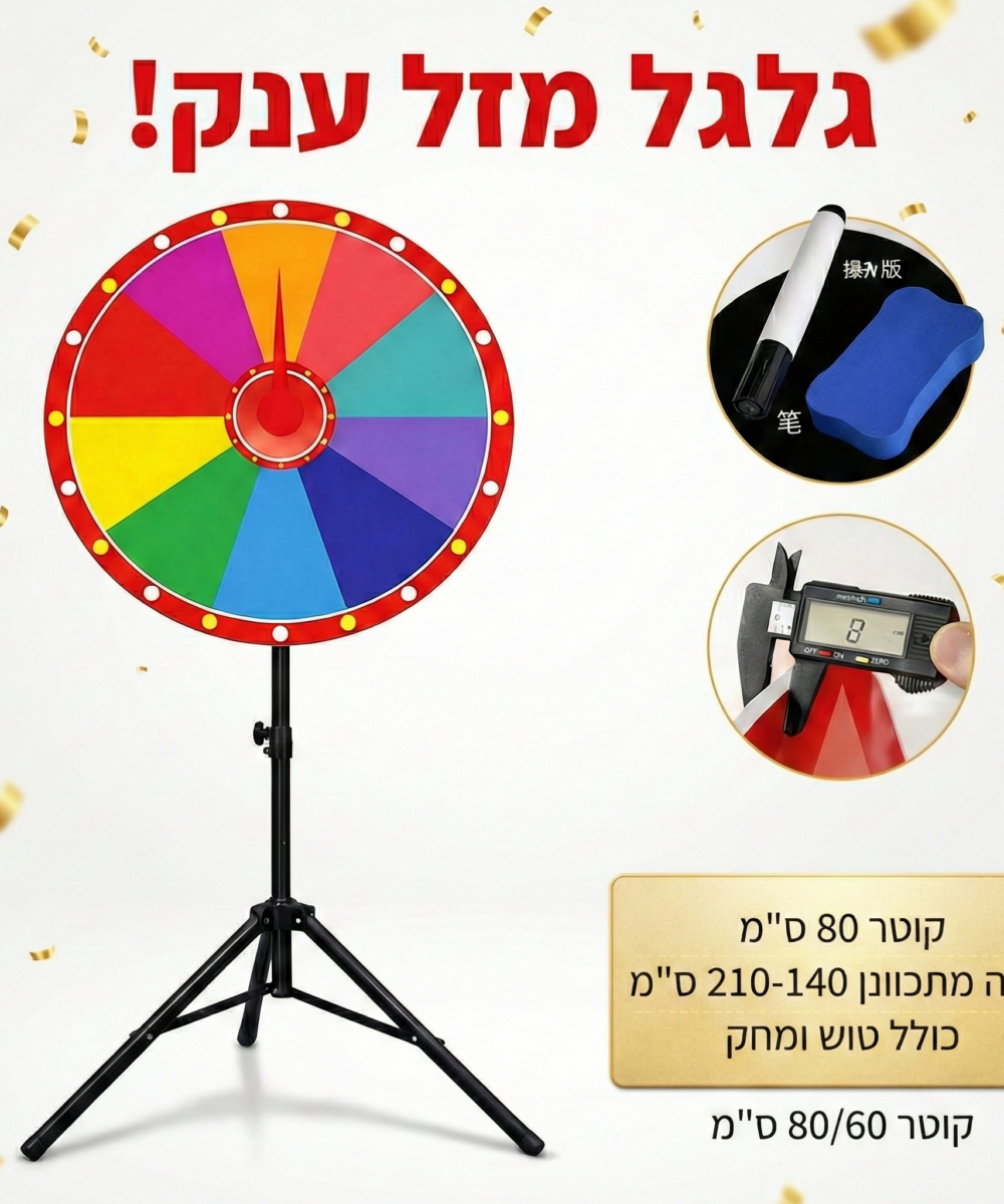 גלגל מזל מקצועי על סטנד – כתיבה ומחיקה | 60/80 ס"מ | לוח PVC עבה