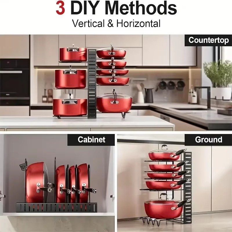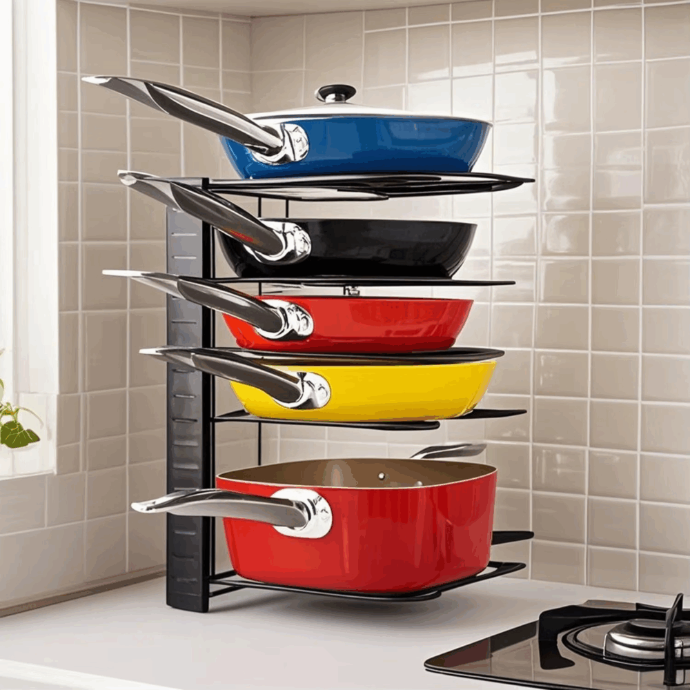 ארגונית סירים ומחבתות 8 שכבות מתכווננת – פתרון מושלם לסדר במטבח!