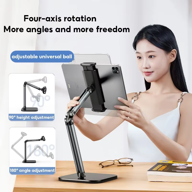 מעמד טאבלט וטלפון מתכוונן 4-13 אינץ' לשולחן עבודה דגם GL80 – פתרון מושלם ללייב סטרימינג, צילום עילי ושימוש יומיומי!