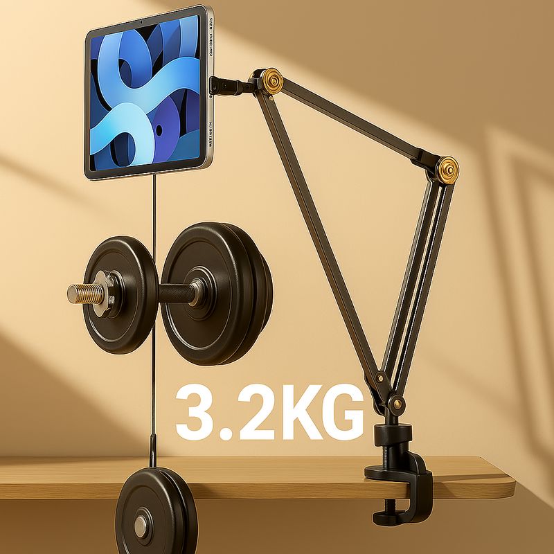 - יציבות חסרת פשרות: עשוי מחומרים איכותיים וחזקים (פלדת פחמן + ABS + סגסוגת אלומיניום), ומסוגל לשאת משקל של עד 3.2 ק"ג! גם טאבלטים גדולים וכבדים במיוחד לא יקרסו.