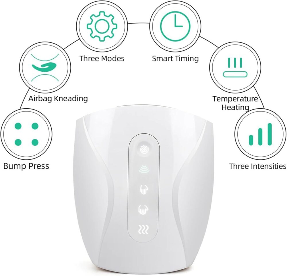 - עיסוי אצבעות נפרד: כריות אוויר עוטפות ומעסות כל אצבע בנפרד.
