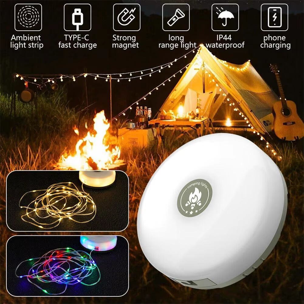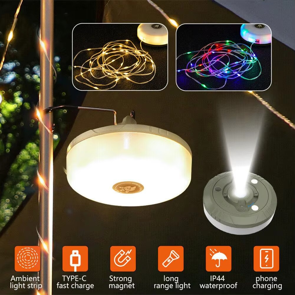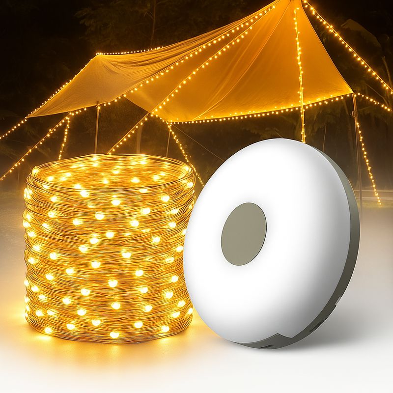 הכירו את פנס הקמפינג הרב-תכליתי האולטימטיבי: מכשיר חדשני המשלב פנס קמפינג עוצמתי עם נורות מחרוזת וגרילנדת נורות לד, מושלם להארת אתר הקמפינג ויצירת אווירה קסומה.