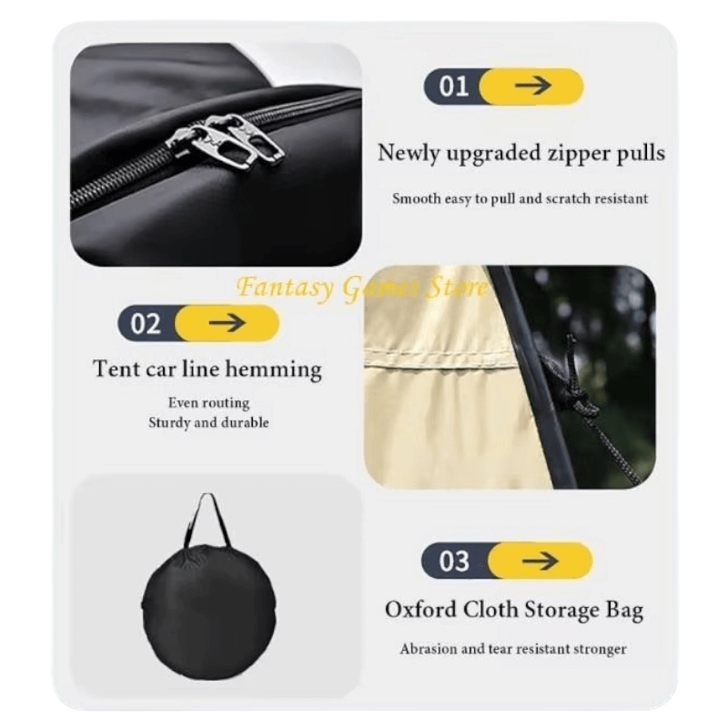 - ניידות ואחסון קלים: האוהל מתקפל לתיק נשיאה קומפקטי, קל משקל ונוח לנשיאה.