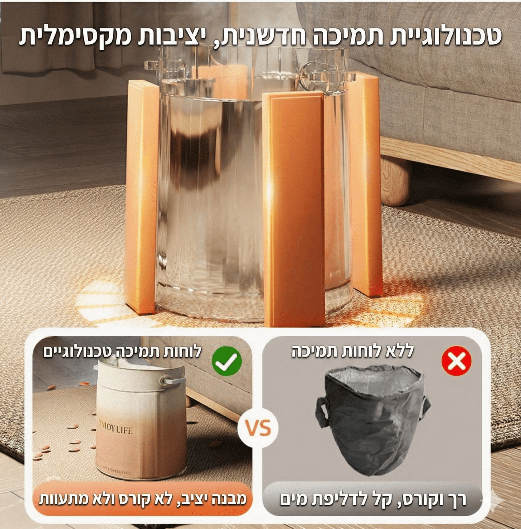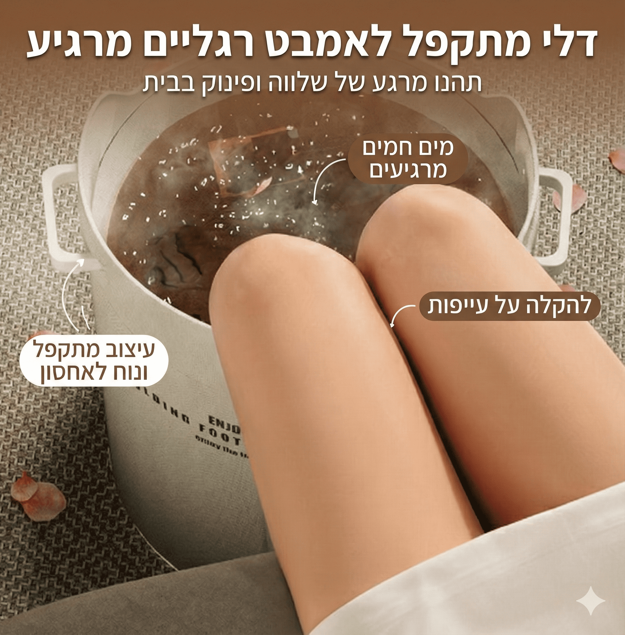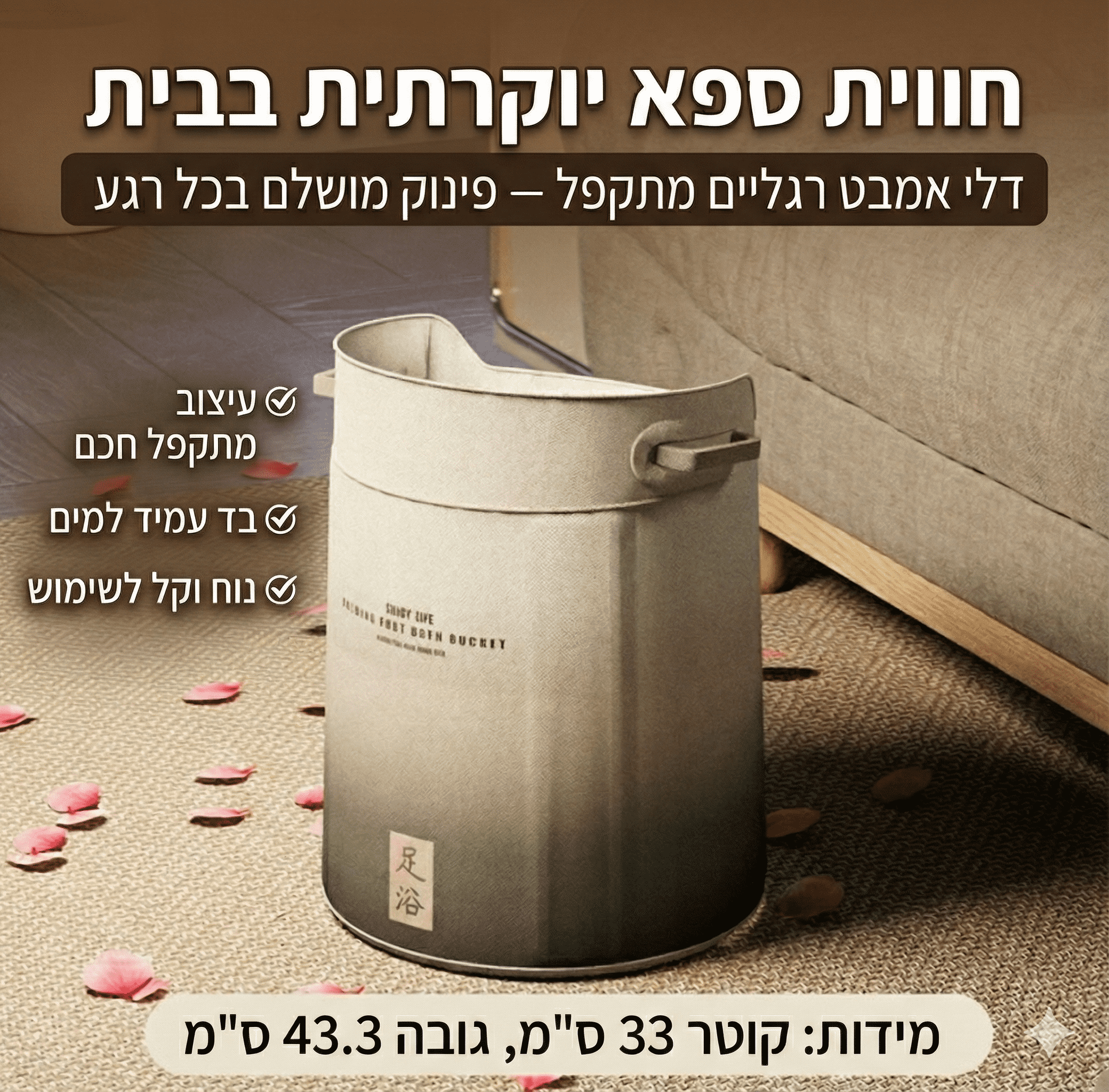 הגיע הזמן לפנק את הרגליים שלכם כמו שצריך דמיינו את סוף היום: אתם מגיעים הביתה עייפים, הרגליים כואבות, וכל מה שמתחשק לכם זה רגע של שקט וחום. אמבט הרגליים המתקפל החדשני שלנו הוא בדיוק הפתרון שחיפשתם. בניגוד לגיגיות פלסטיק פשוטות או שקיות שקורסות, הדלי הזה תוכנן בטכנולוגיה מתקדמת המשלבת נוחות, יציבות ואסתטיקה.