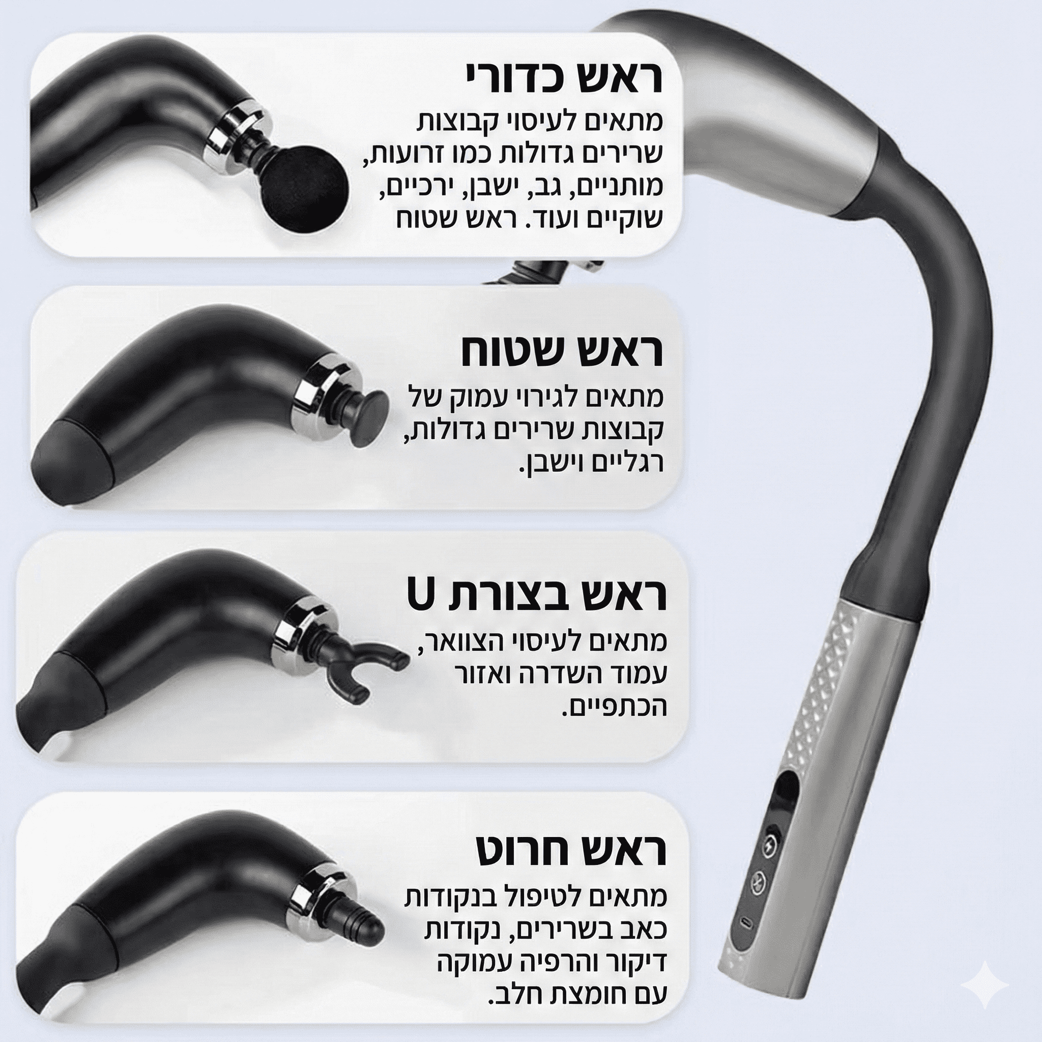 4 ראשי עיסוי מתחלפים – מותאמים לכל קבוצות השרירים