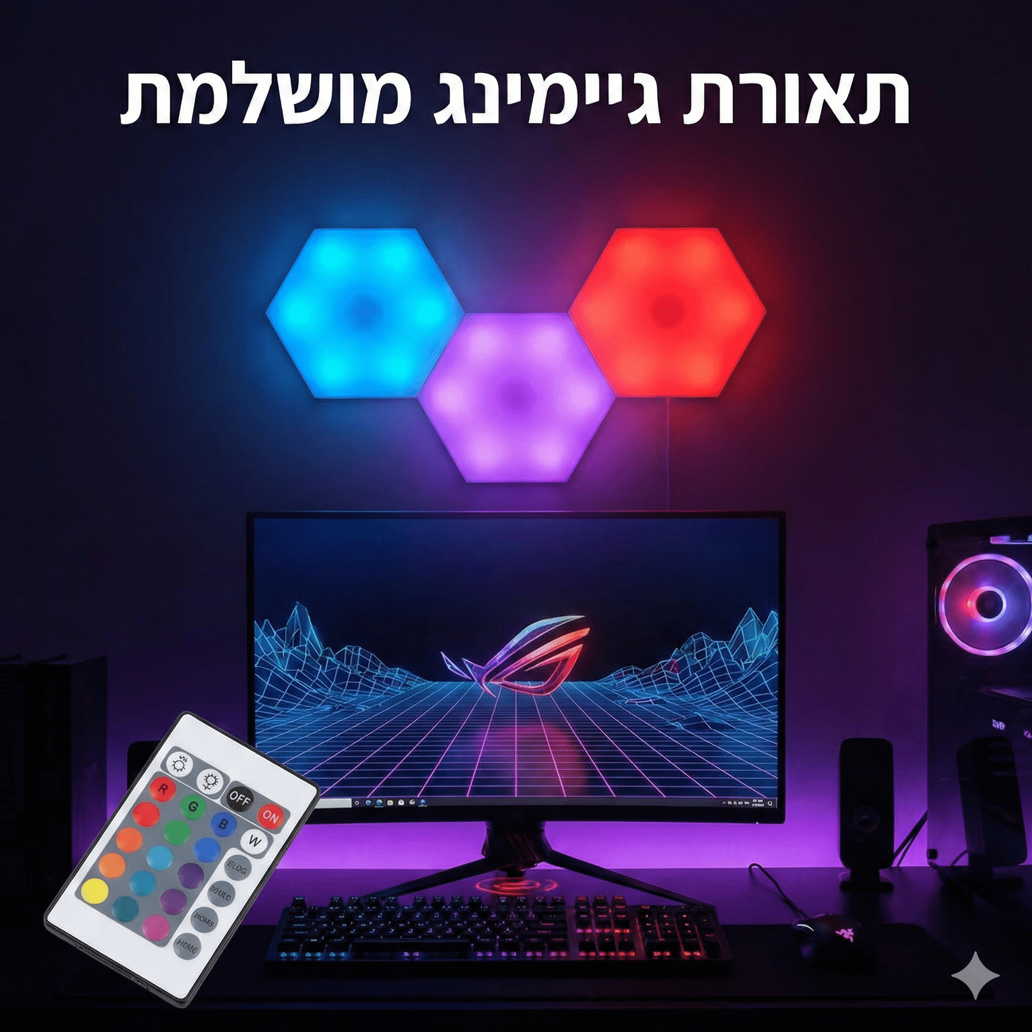 אריחי תאורה חכמים לקיר בעיצוב כוורת לגיימינג CyberWall