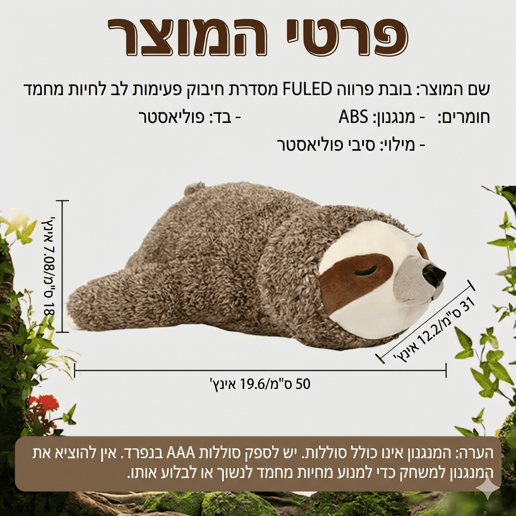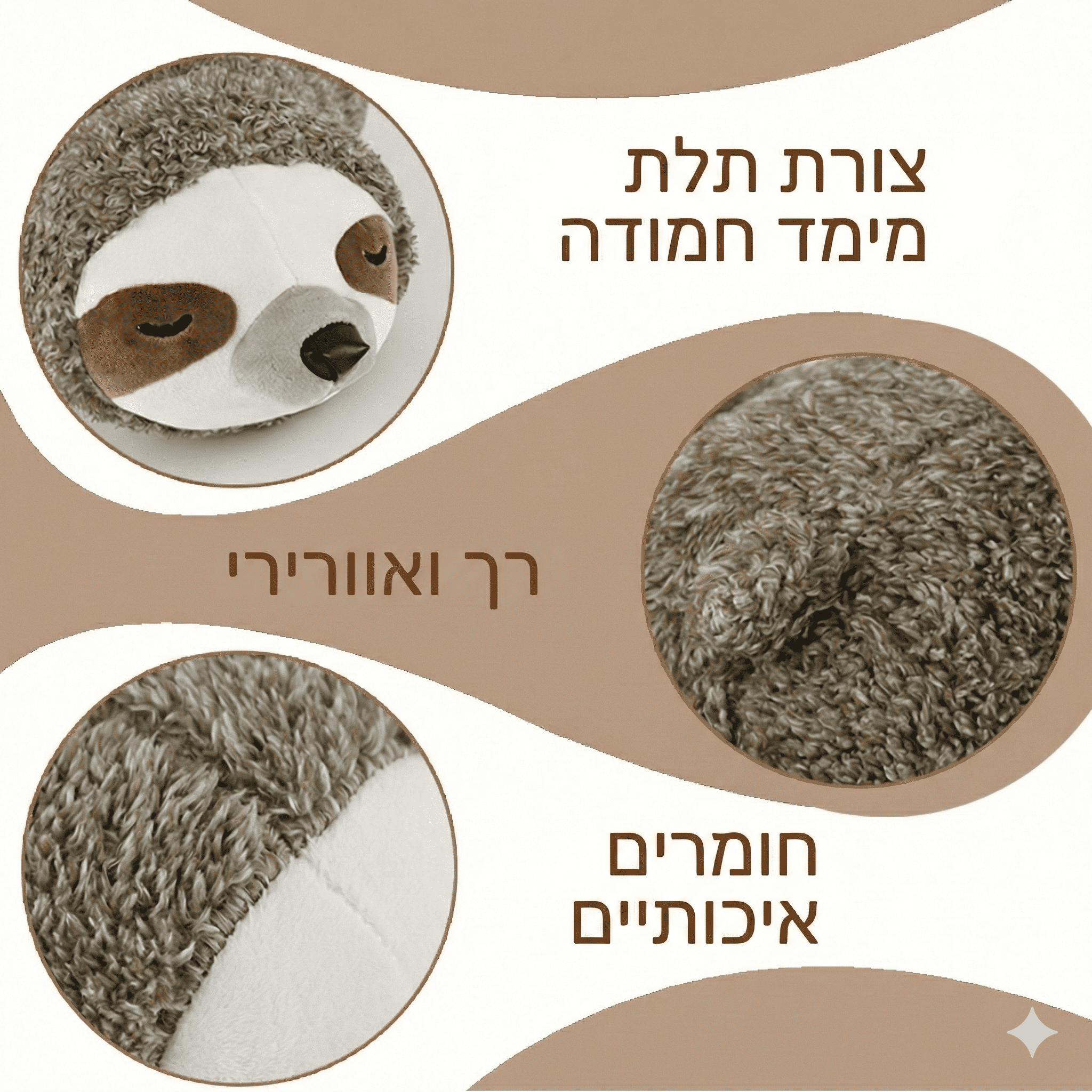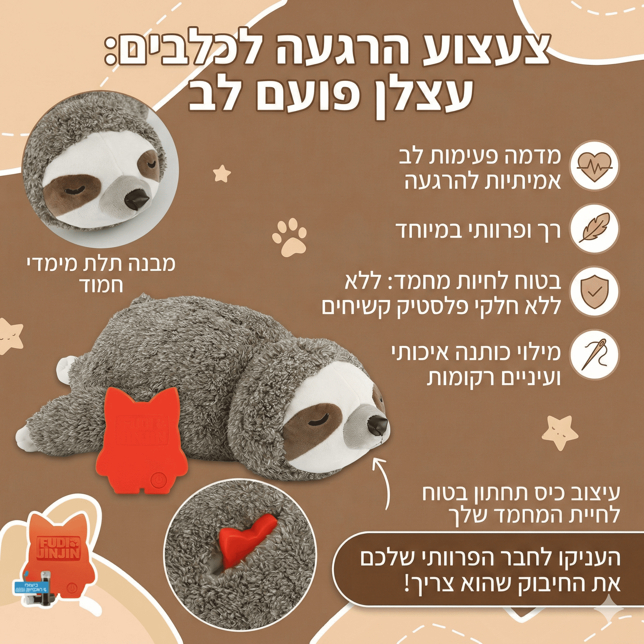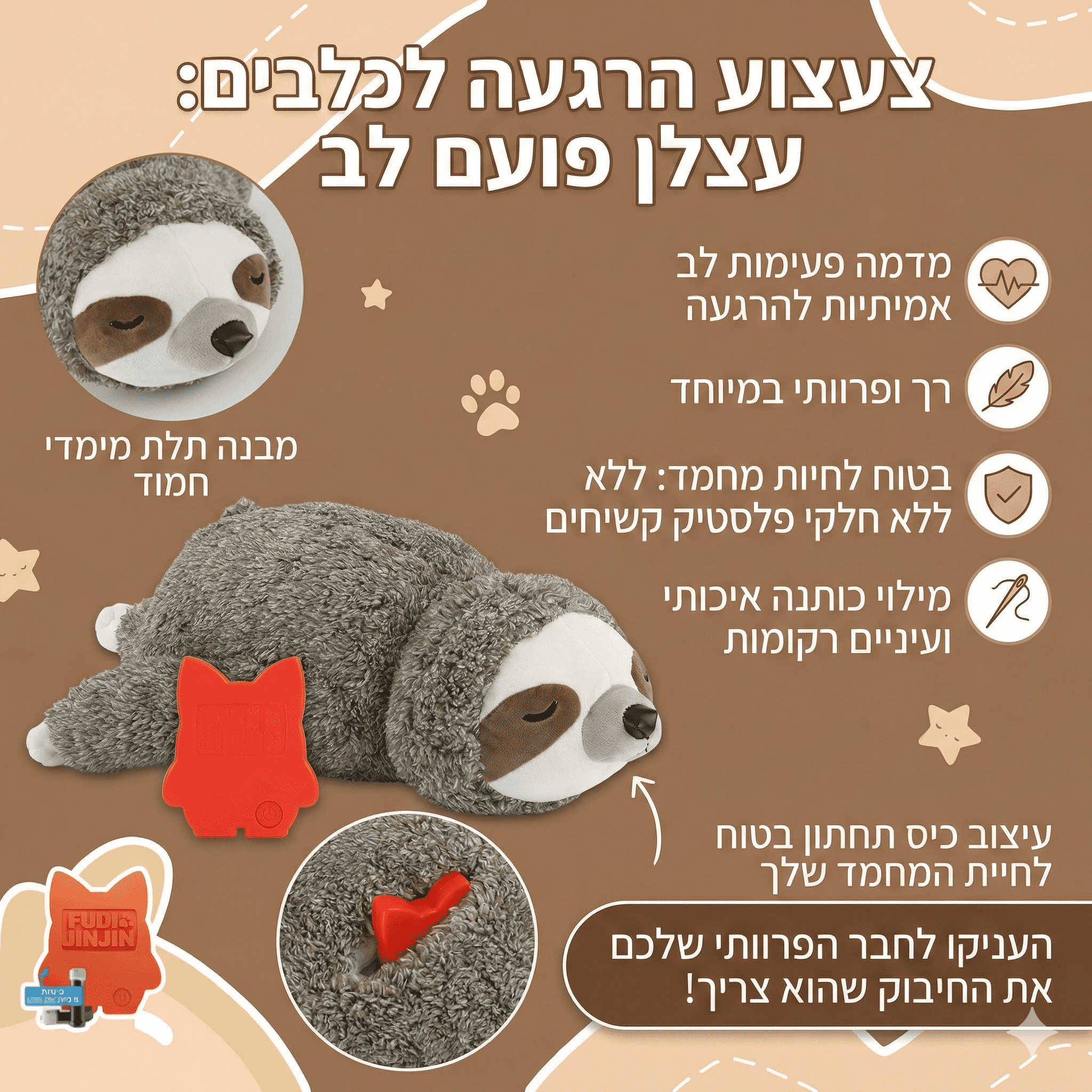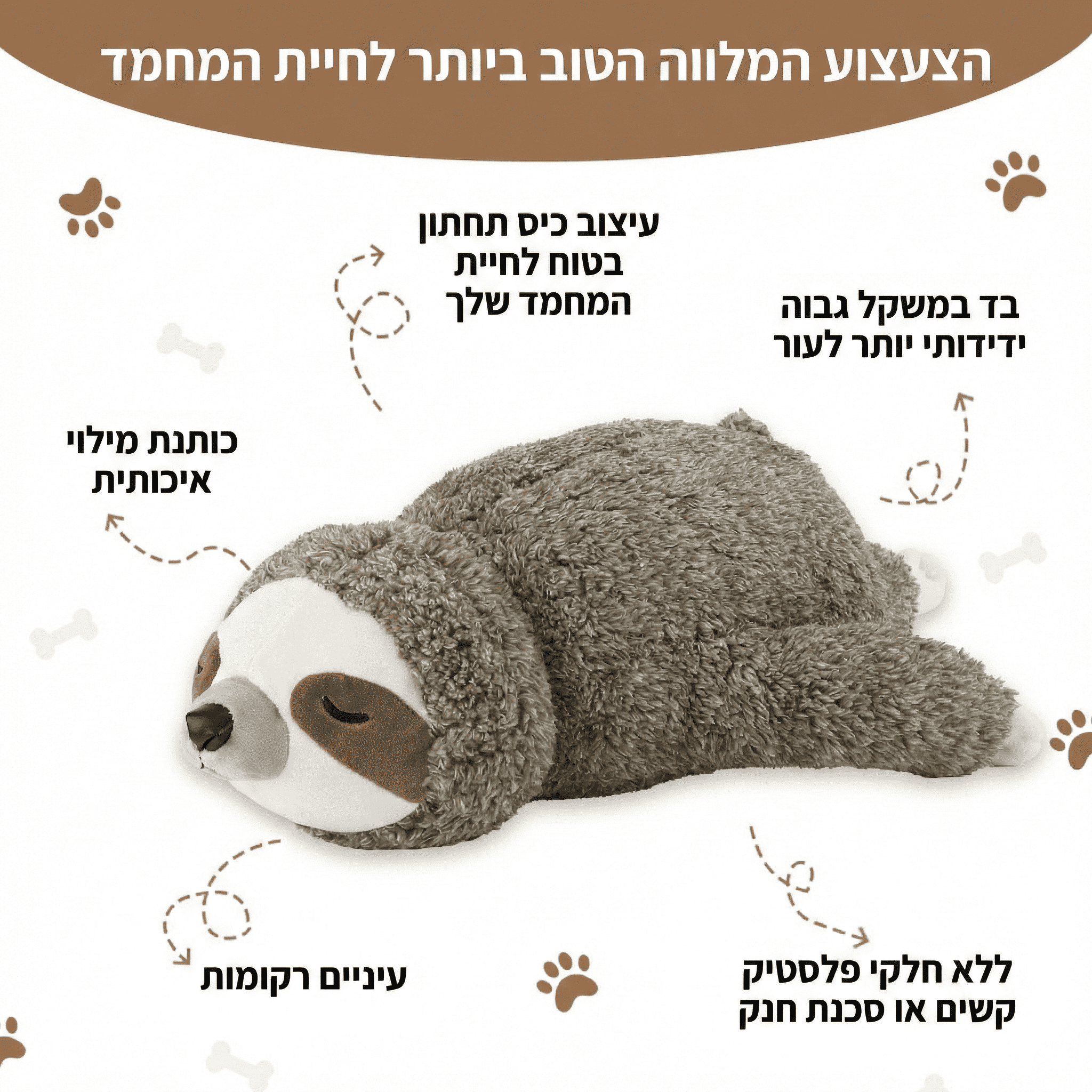 העניקו לחיית המחמד שלכם תחושת ביטחון ורוגע עם בובת העצלן הרכה שלנו. הצעצוע כולל מנגנון ייחודי המדמה דופק לב אמיתי, המסייע בהפחתת חרדת נטישה, בדידות ולחץ אצל גורים וכלבים בוגרים. עשוי מבד איכותי ונעים ללא חלקים קשיחים (בטיחותי ללעיסה). החבר המושלם לכרבולים ולשינה רגועה.