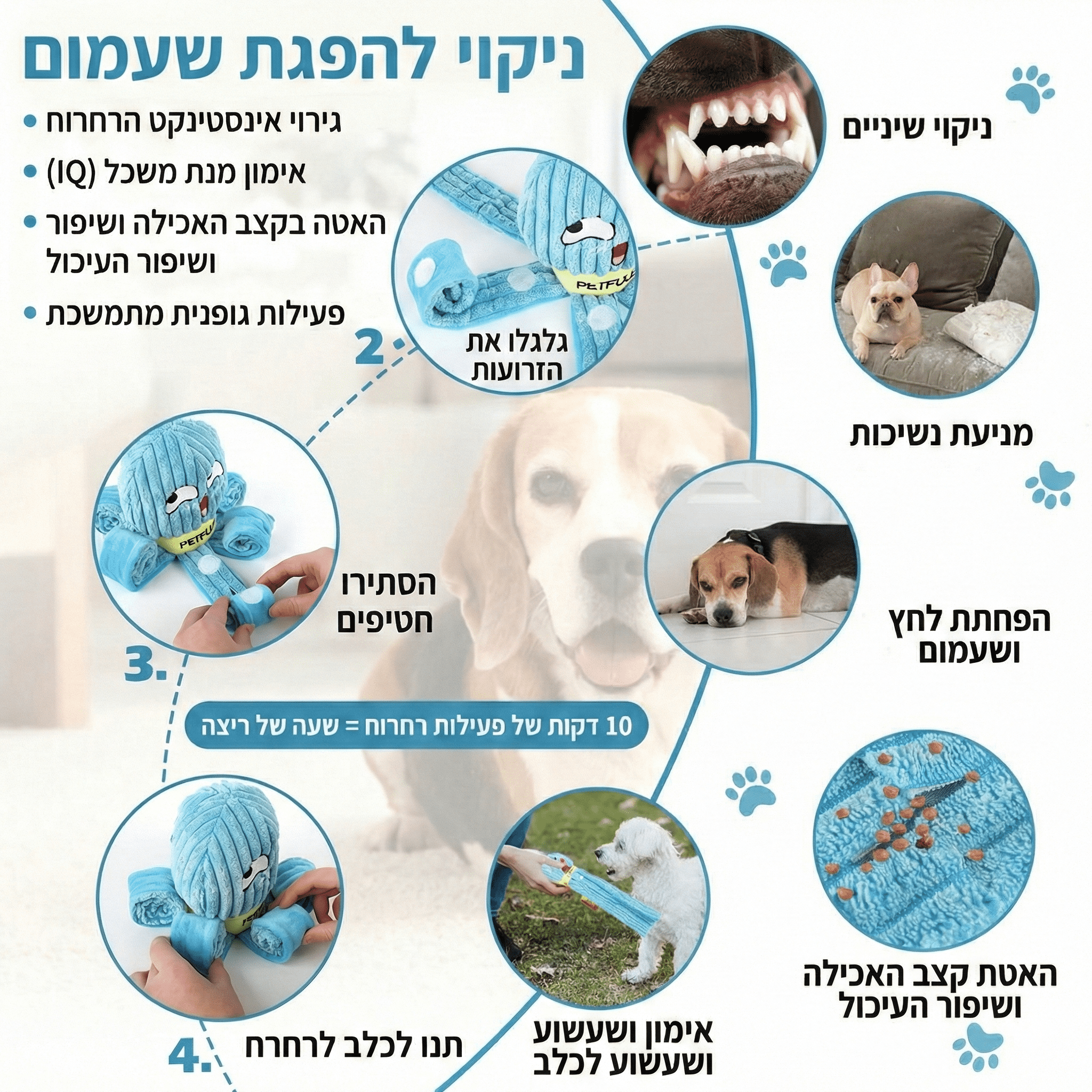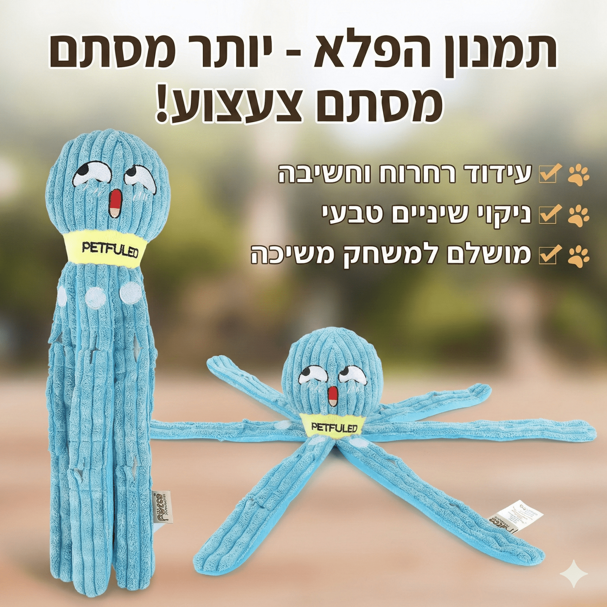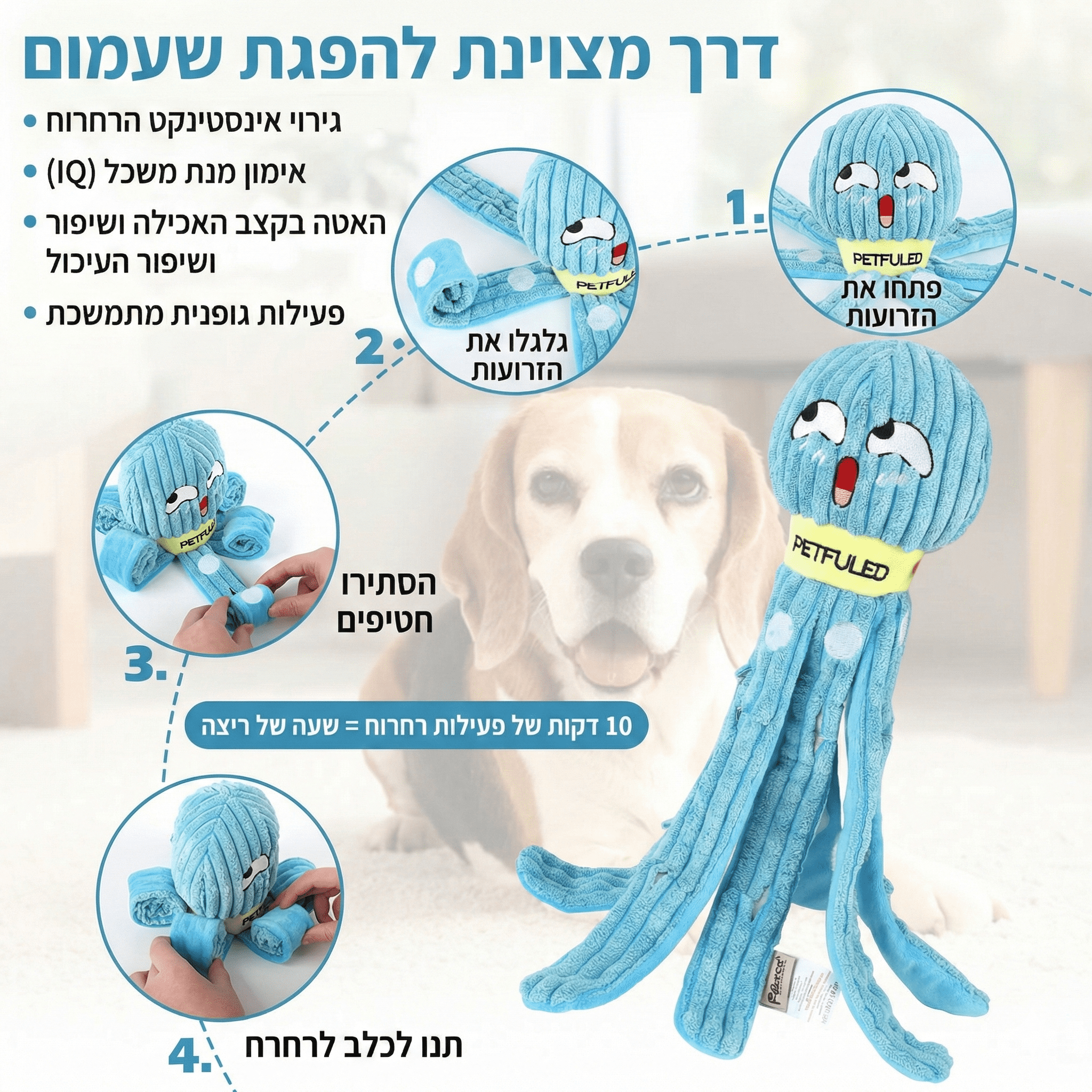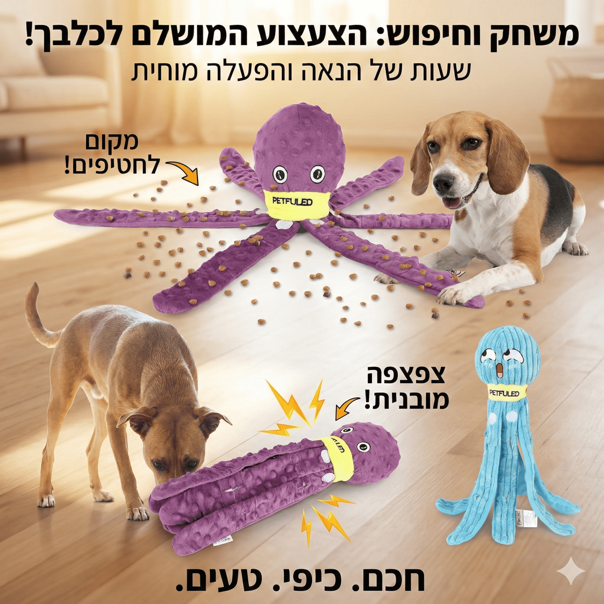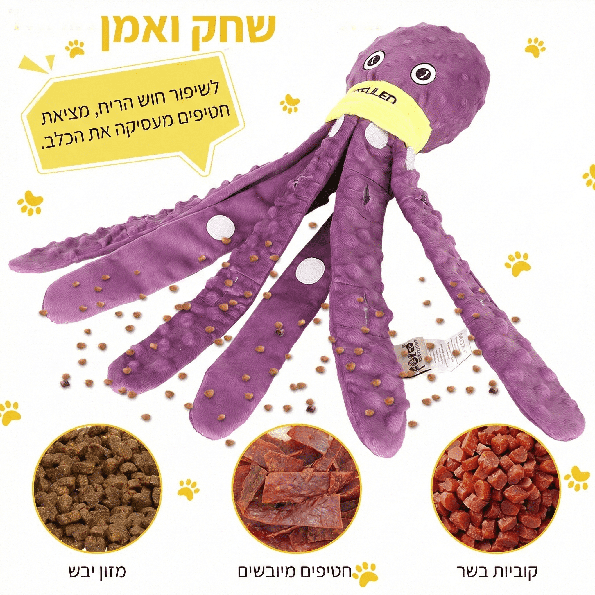הפכו את זמן האוכל והמשחק של הכלב שלכם לחוויה מאתגרת ומרתקת. צעצוע התמנון החדשני הוא הרבה יותר מסתם בובה רכה – זהו משחק חשיבה והרחה שנועד להעסיק את הכלב לאורך זמן, לשפר את יכולות הריח שלו ולמנוע אכילה מהירה מדי.