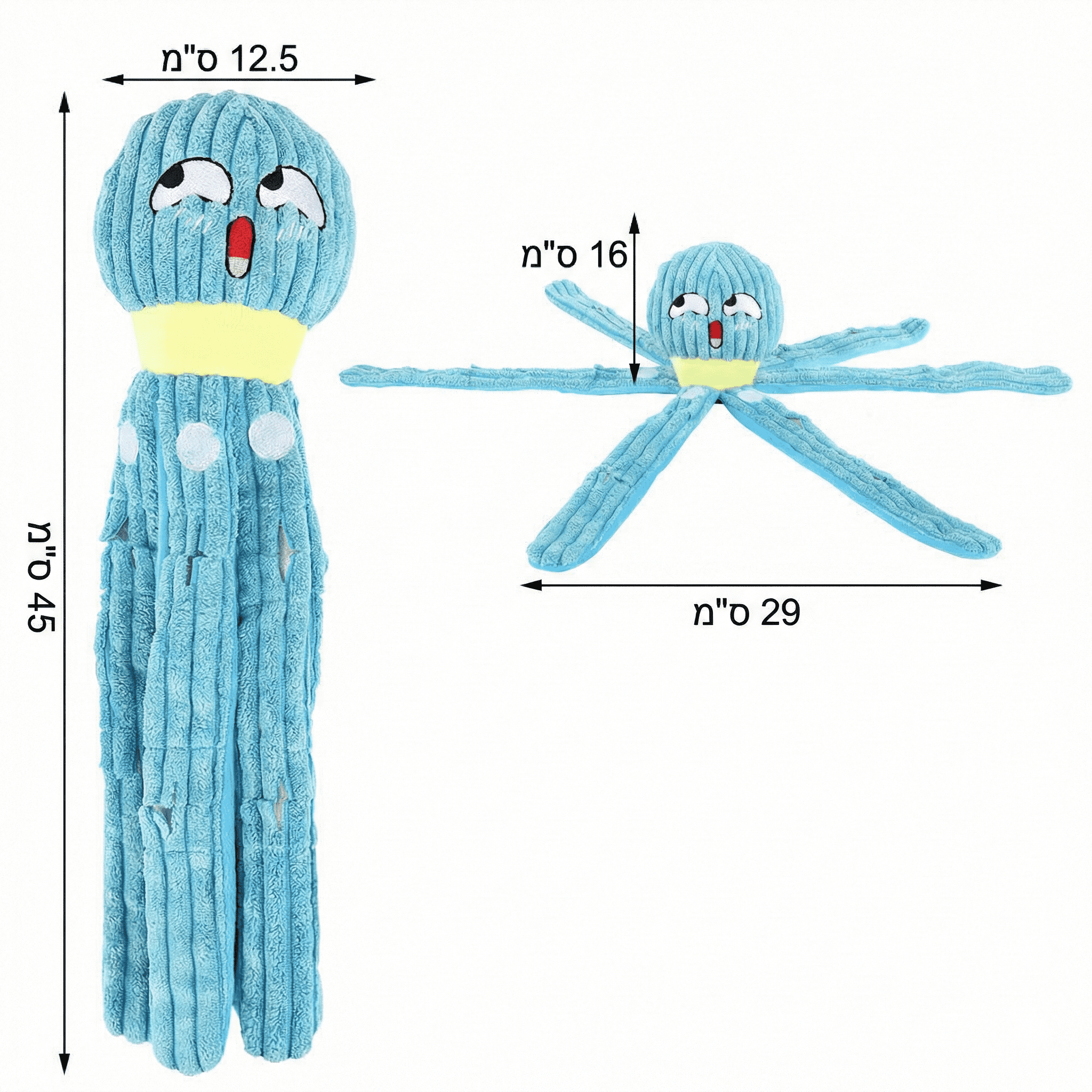 חומר: בד קטיפה רך ועמיד, מילוי פוליאסטר.