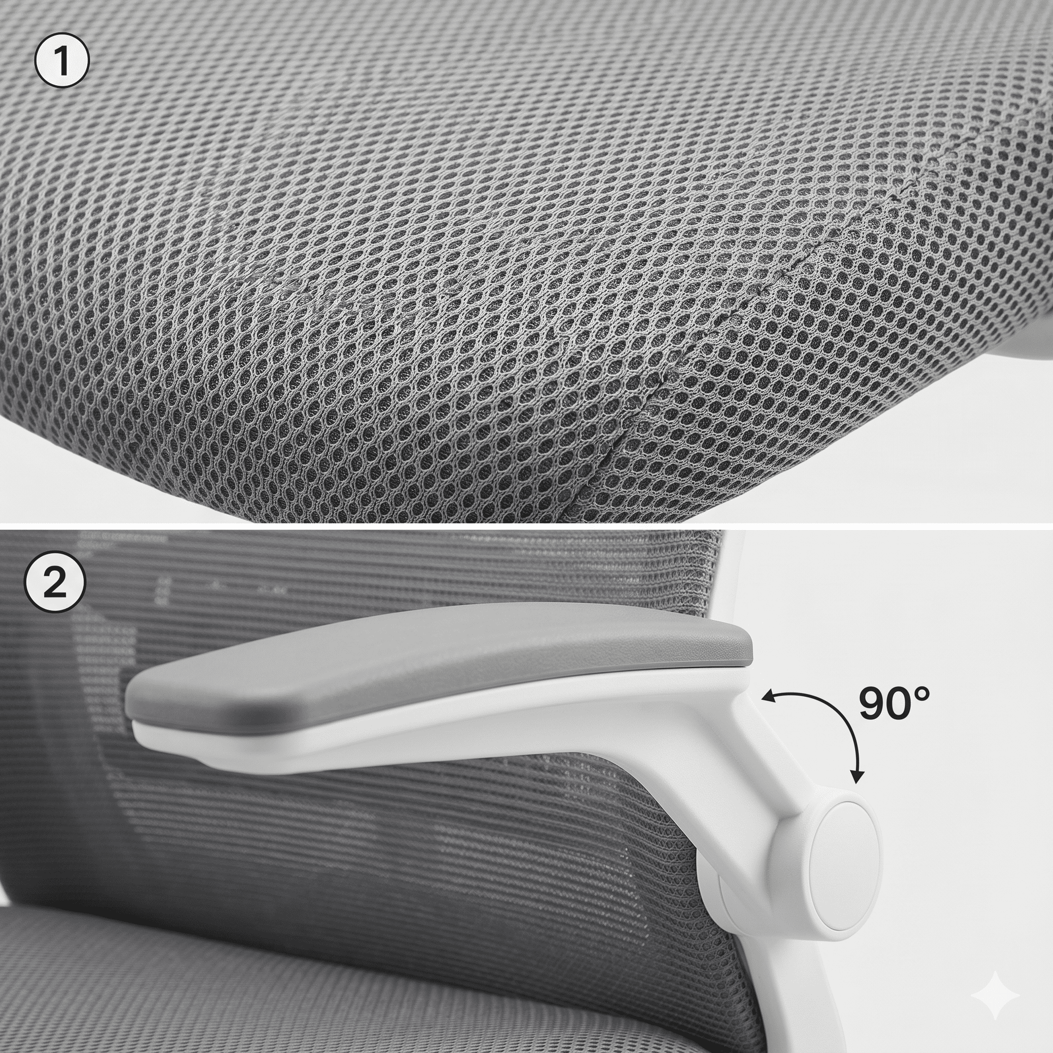 ידיות מתקפלות 1D לחיסכון במקום (90 מעלות): הופכים את הכיסא למקומפקטי ודוחפים אותו עמוק מתחת לשולחן, לחיסכון של עד 1 מ"ר של שטח!