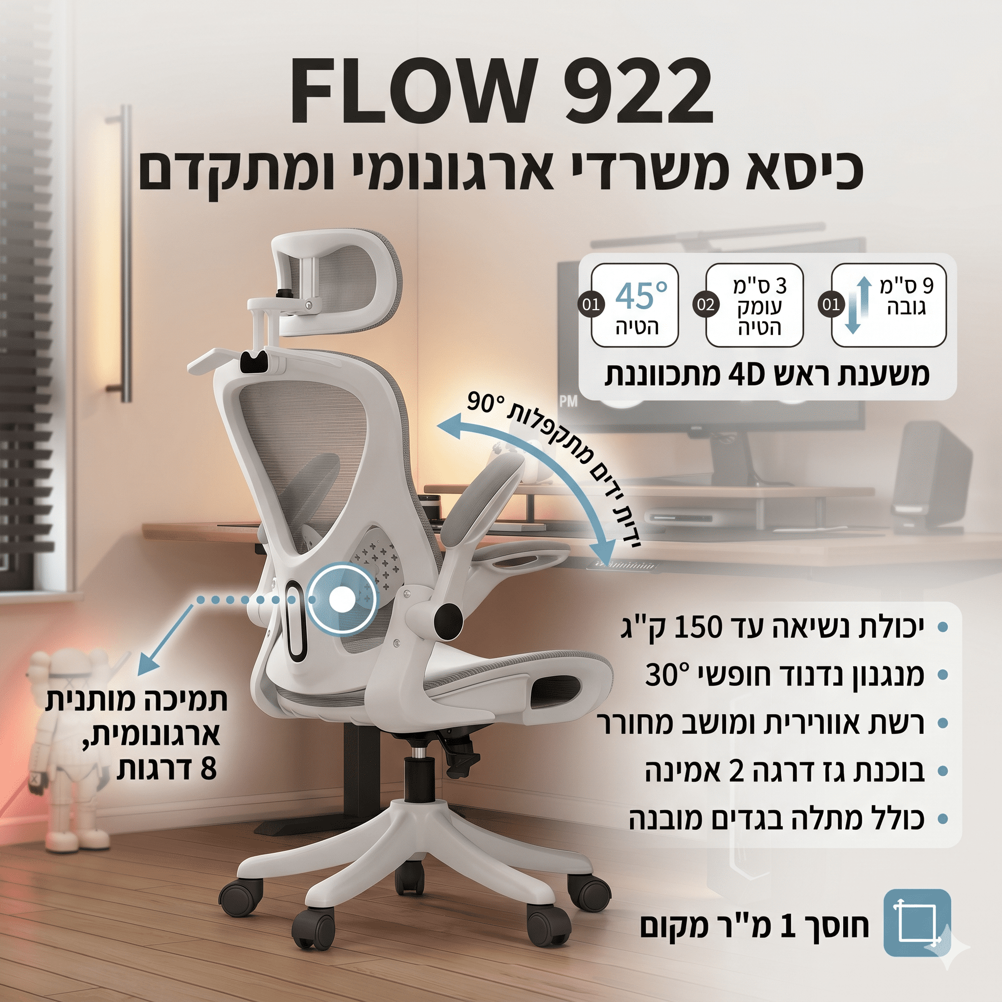 סוג מוצר: כיסא משרדי ארגונומי (FLOW 922).