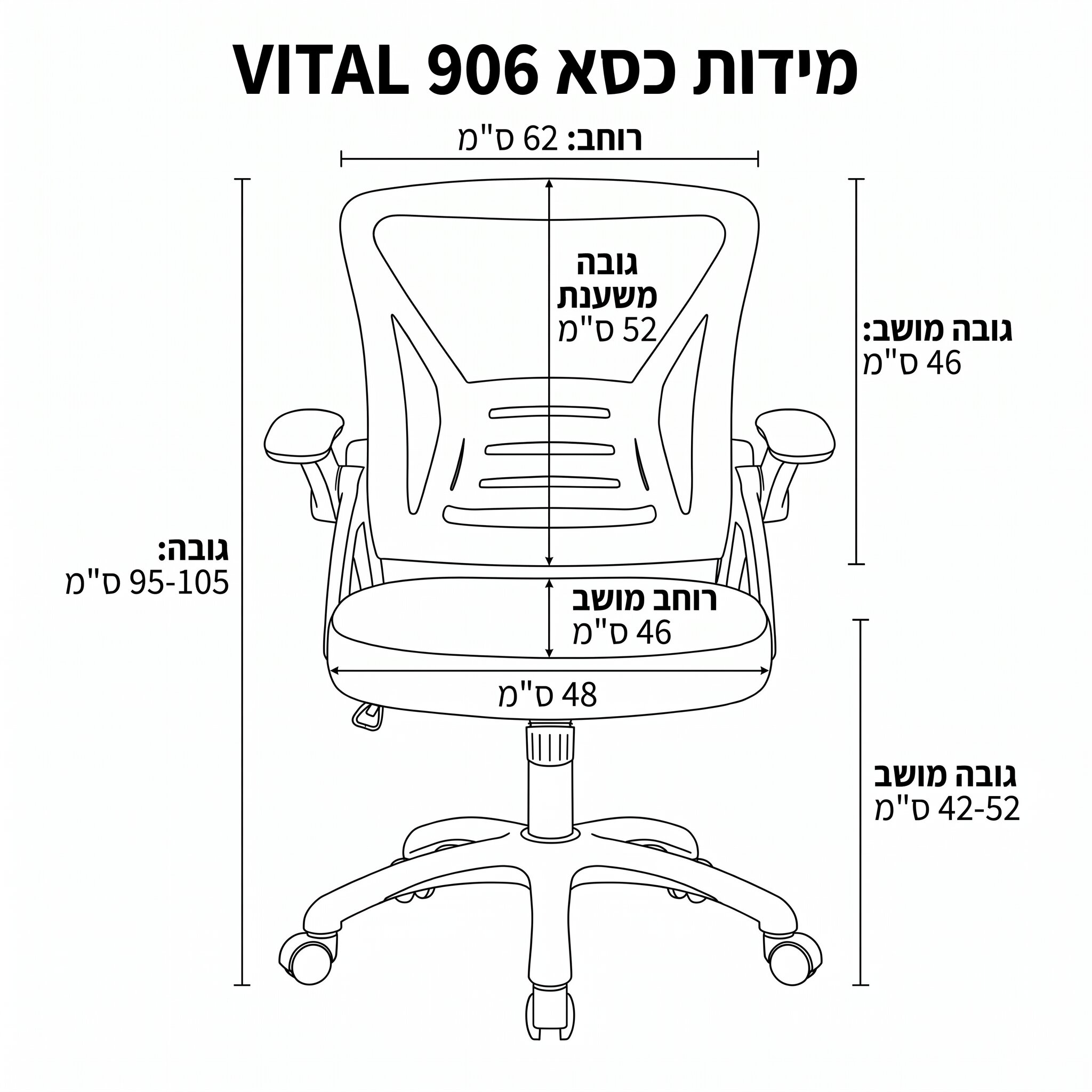 | גובה משענת גב | 52 ס"מ |