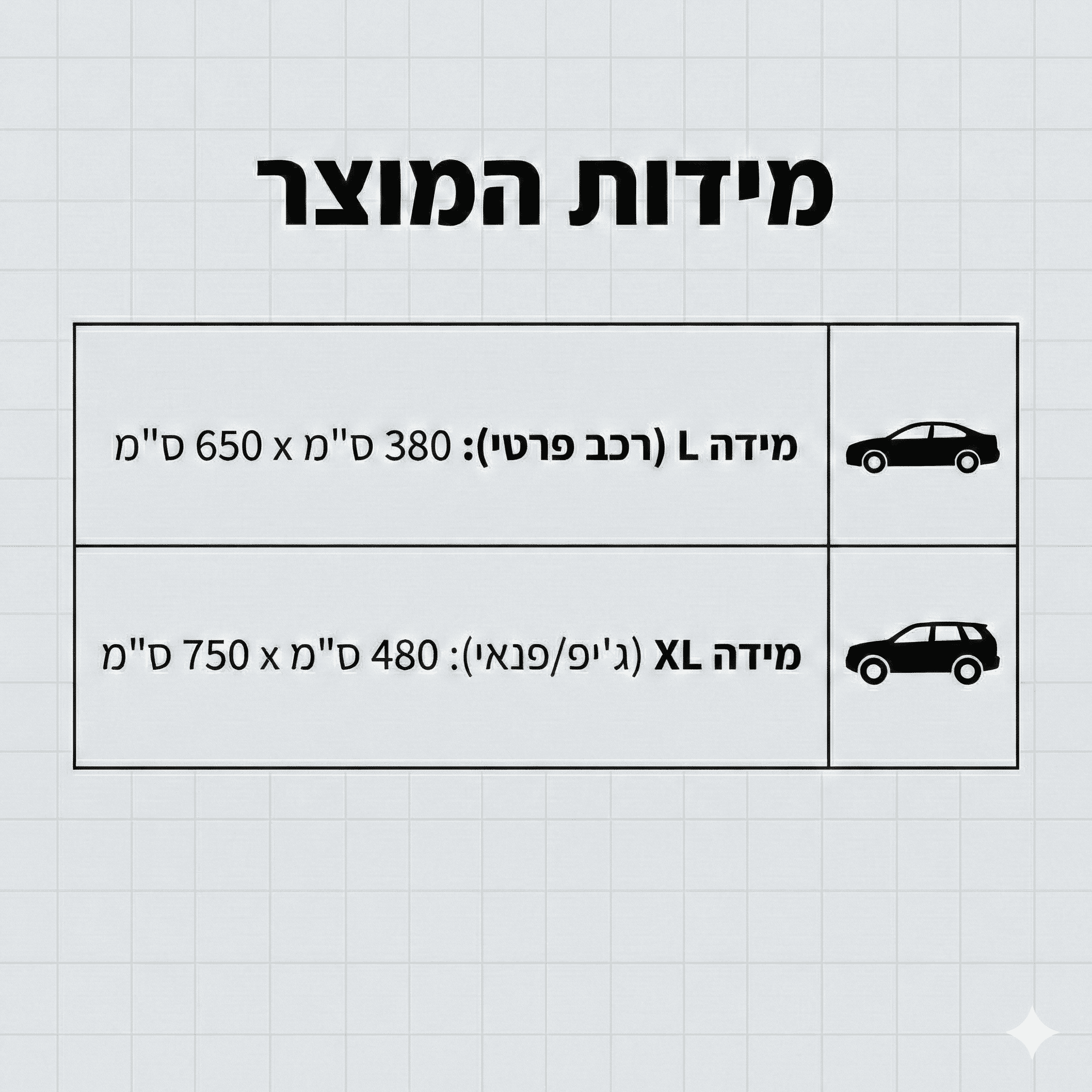 מידה ענקית המתאימה לרכבי שטח, ג'יפונים ורכבים ארוכים יותר.