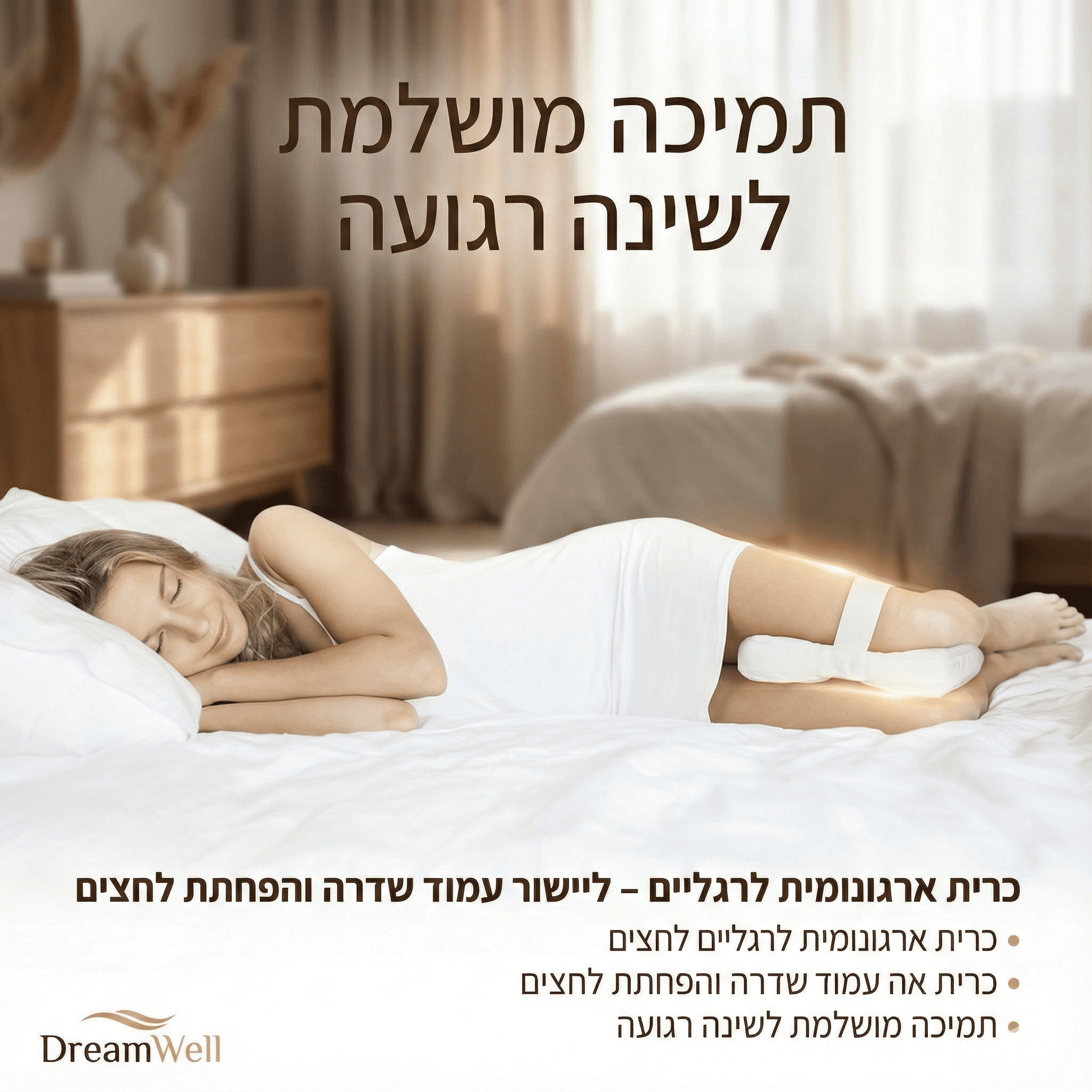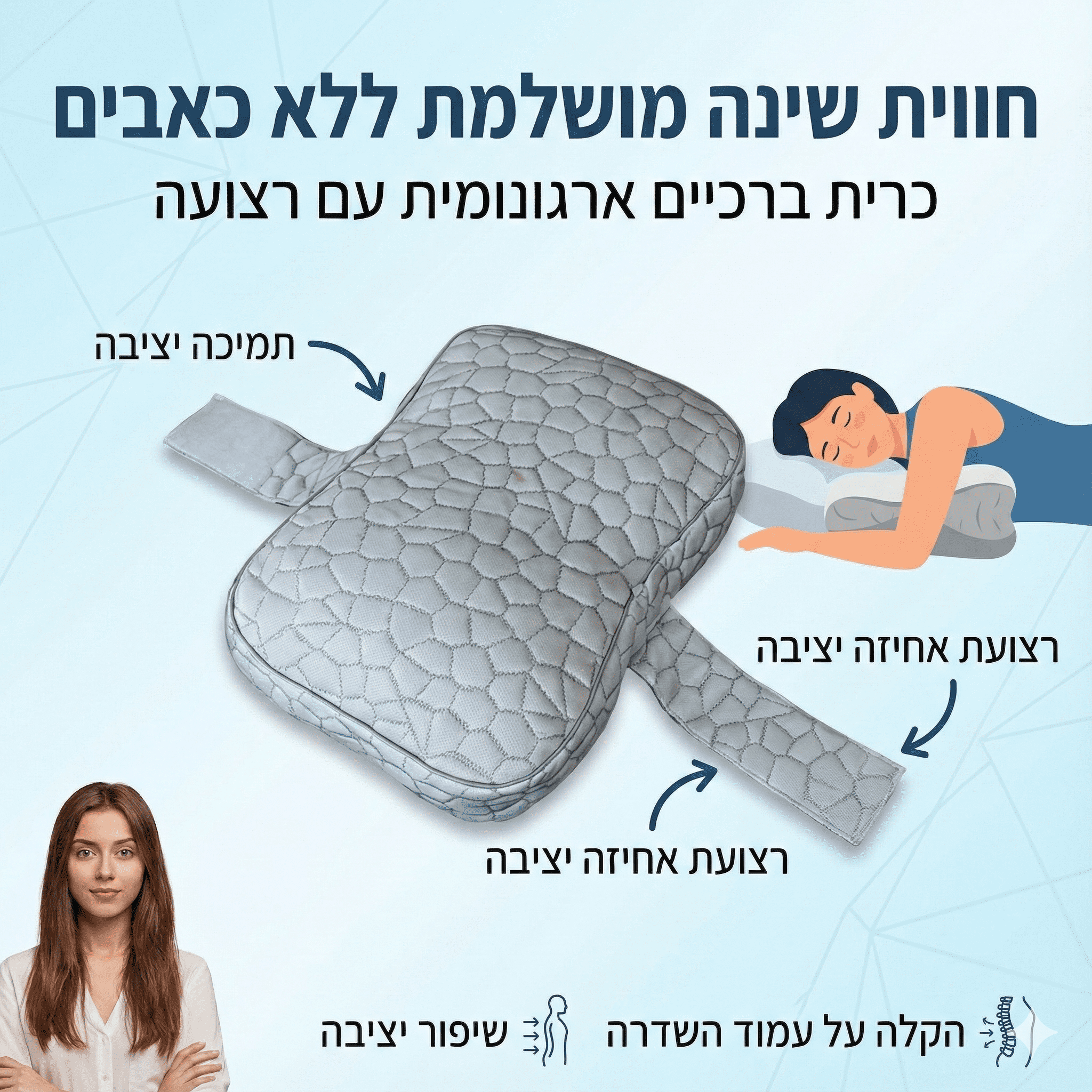 רוב האנשים הישנים על הצד מכירים את הבעיה: הרגל העליונה "נופלת" קדימה, מושכת איתה את האגן ויוצרת לחץ מיותר על הגב התחתון ועמוד השדרה. התוצאה? קימה בבוקר עם כאבים, נוקשות ועייפות.