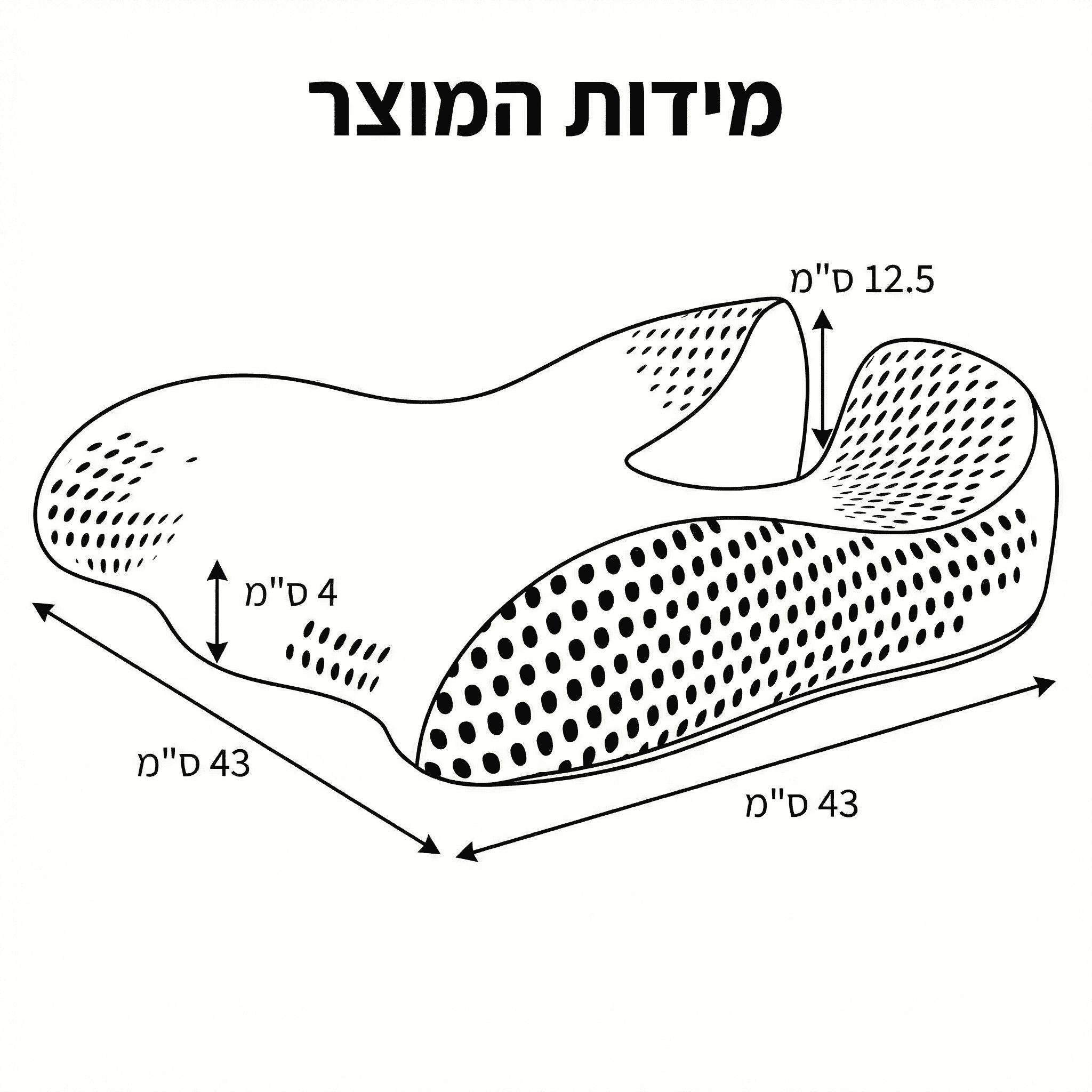 גובה: עיצוב משופע (4 ס"מ בחלק הקדמי ועד 12.5 ס"מ בחלק האחורי) לתמיכה אופטימלית בירכיים ובישבן.
