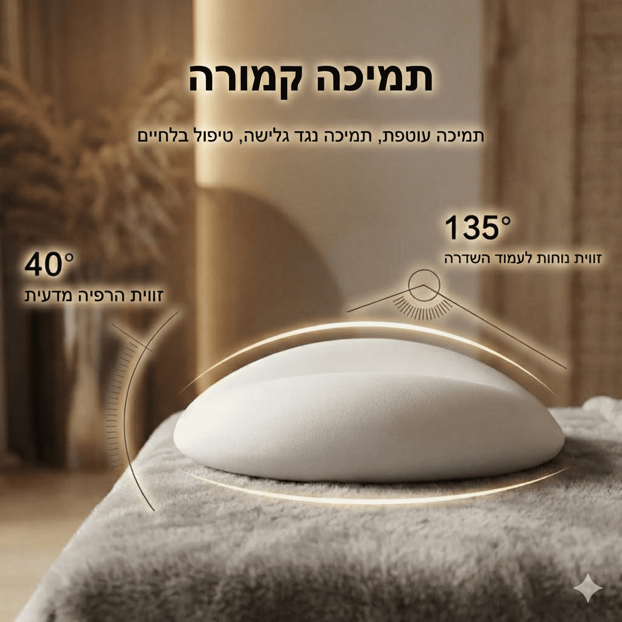 תמיכה ארגונומית מדעית: עיצוב הכרית מבוסס על קימורים פיזיולוגיים מדויקים: