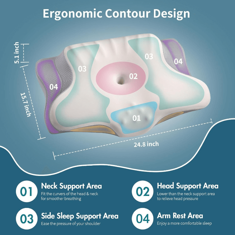 - לכל תנוחות השינה: מתאימה לישנים על הצד, הגב או הבטן. העיצוב הרב-תכליתי כולל אזורי תמיכה לצוואר, ראש, כתפיים וידיים.