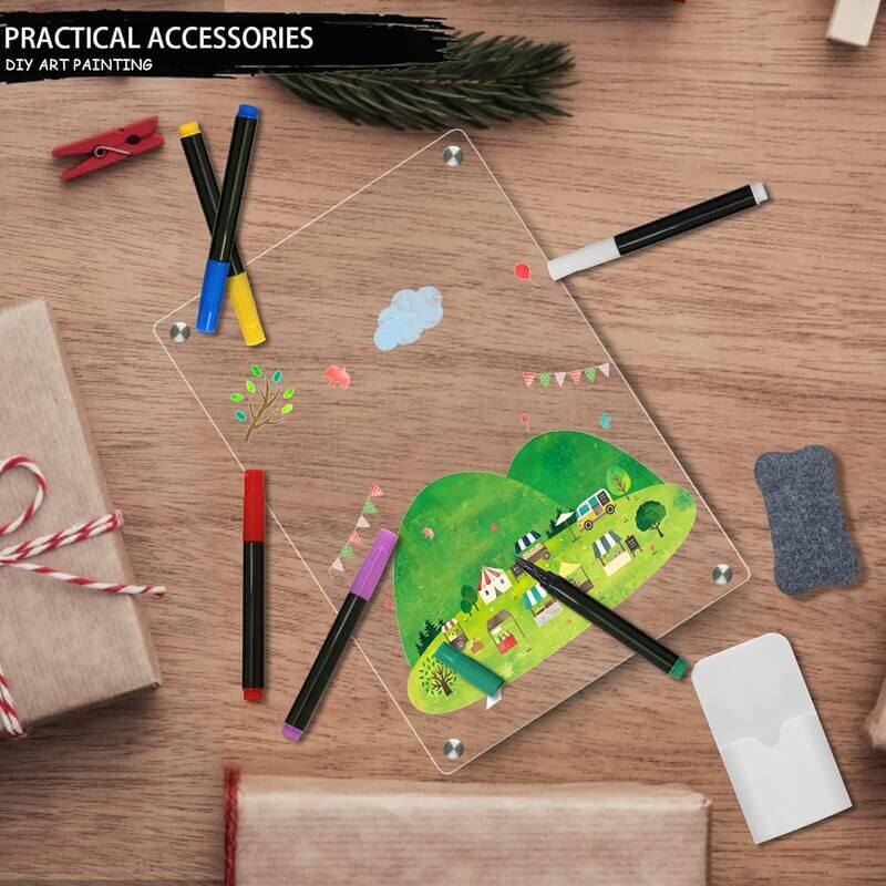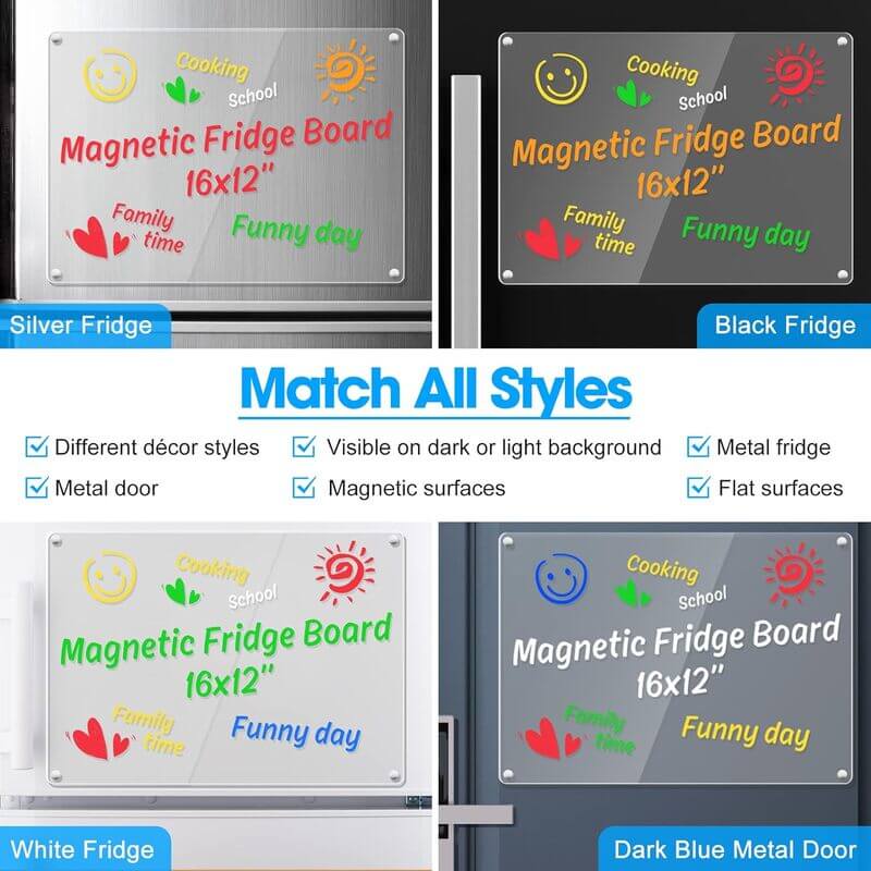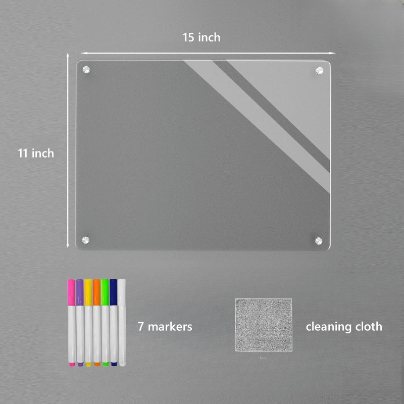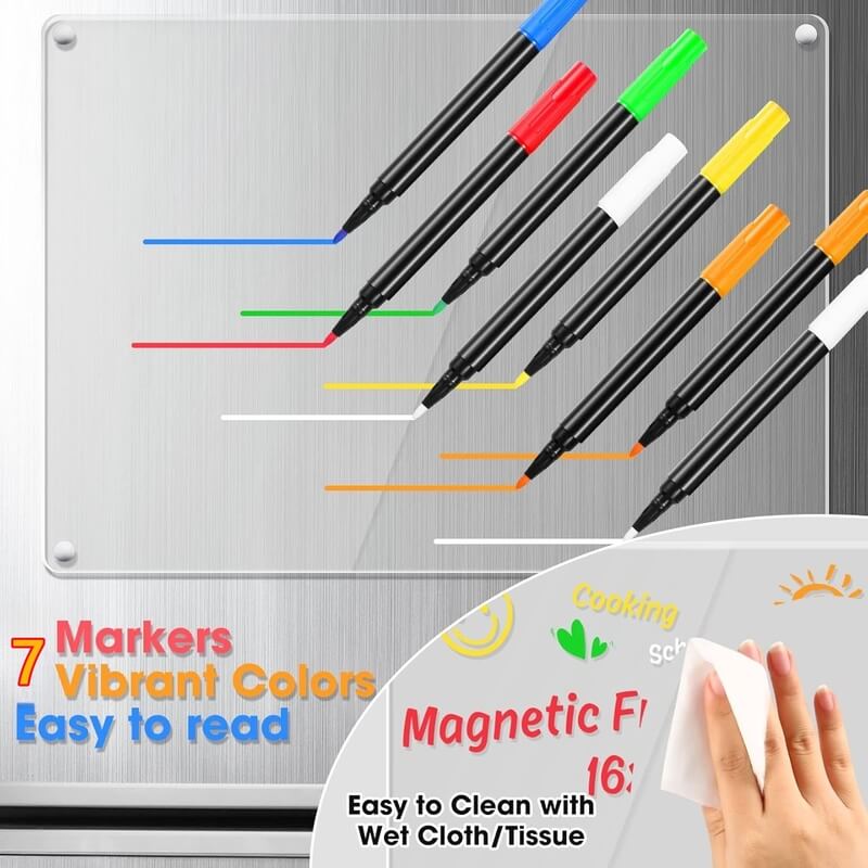לוח תזכורות מגנטי שקוף: לוח מחיק אקריליק למקרר (כולל טושים זוהרים)