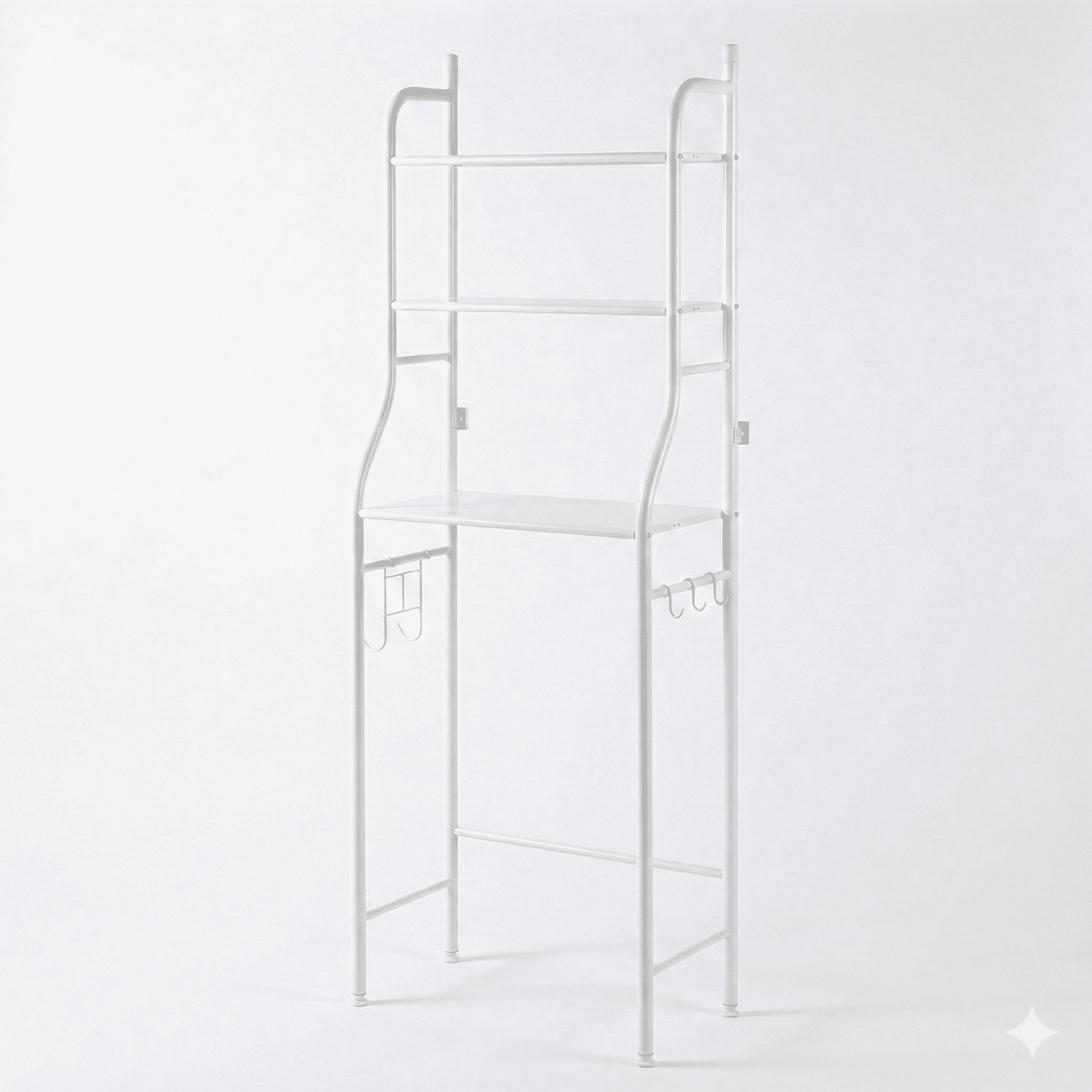 המדפים מצוינים לאחסון שמפו/סבונים, קוסמטיקה, סלסלות אחסון, חומרי ניקוי, אבקות כביסה ומרכך, וגם מגבות מקופלות. בנוסף יש ווים צדדיים לתליית מגבות/אביזרים ולשמירה על סדר יומיומי. העיצוב הלבן והנקי משתלב יפה בכל סגנון ומעניק מראה מסודר ומודרני.