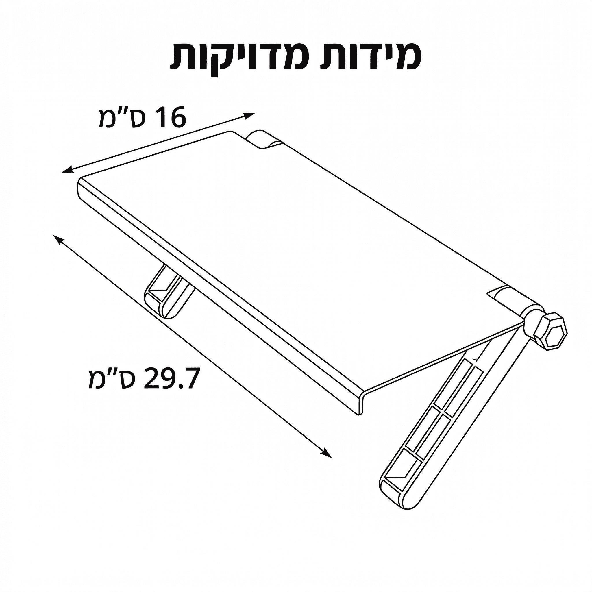 התקנה ללא כלים: רגליים מתכווננות עם בורג נעילה מהיר, להתאמה מושלמת לכל מסך (דק או עבה).
