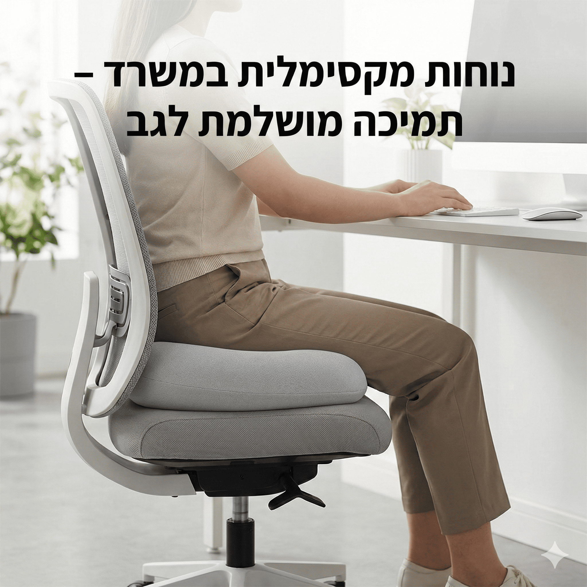 מתאימה לישיבה ממושכת: נבדקה ואושרה לשימוש רציף של מעל 8 שעות (8h Sedentary), אידיאלית לעובדי משרד, נהגים וגיימרים.