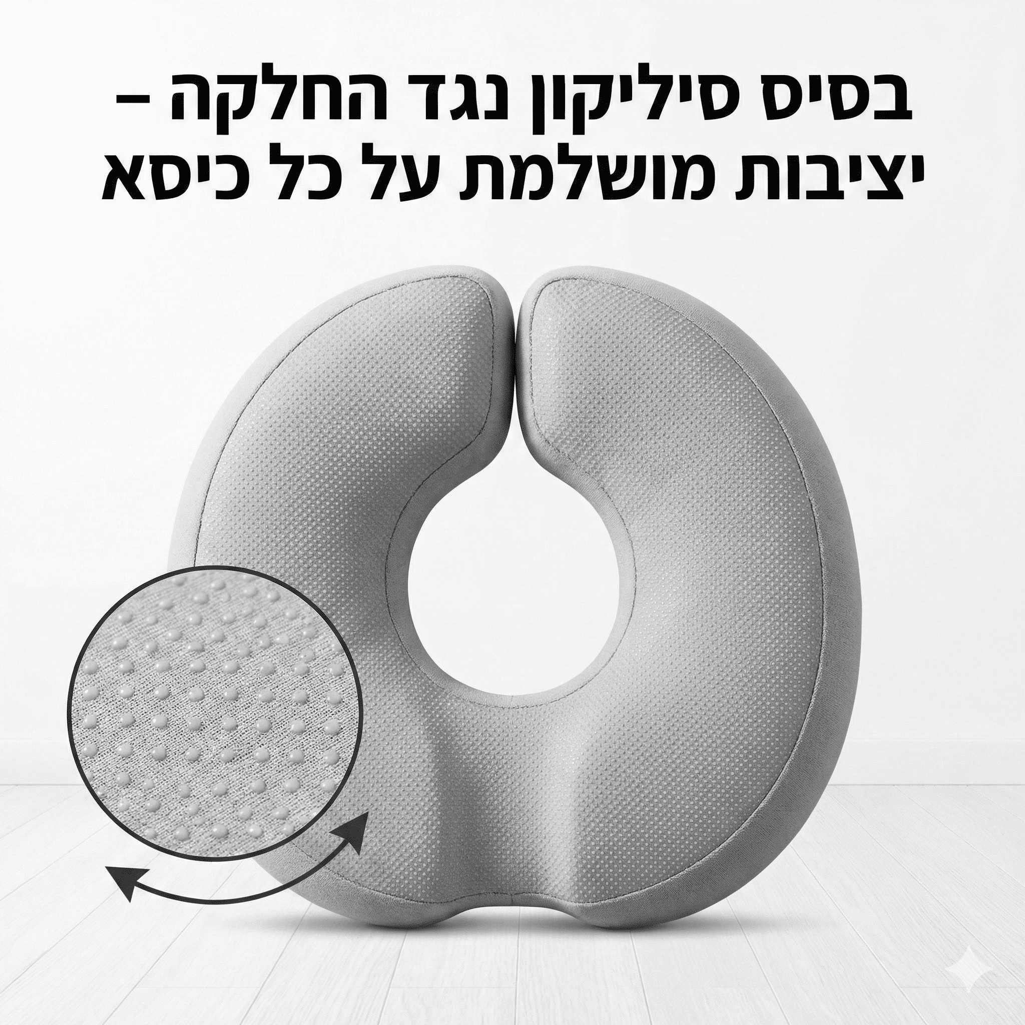 יציבות מושלמת: תחתית הכרית מצוידת בנקודות סיליקון למניעת החלקה, כך שהיא נשארת במקומה על כל סוגי המושבים – כיסא משרדי, מושב הרכב, או כורסה בבית.