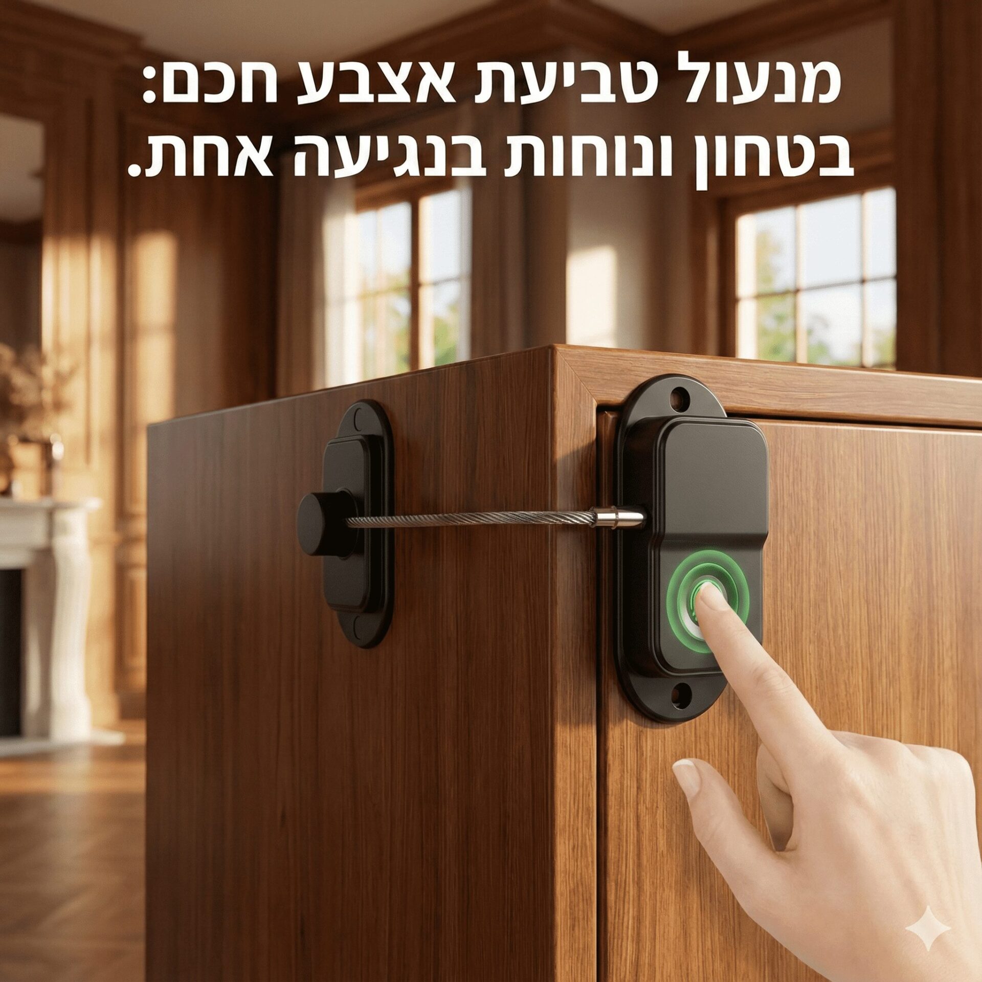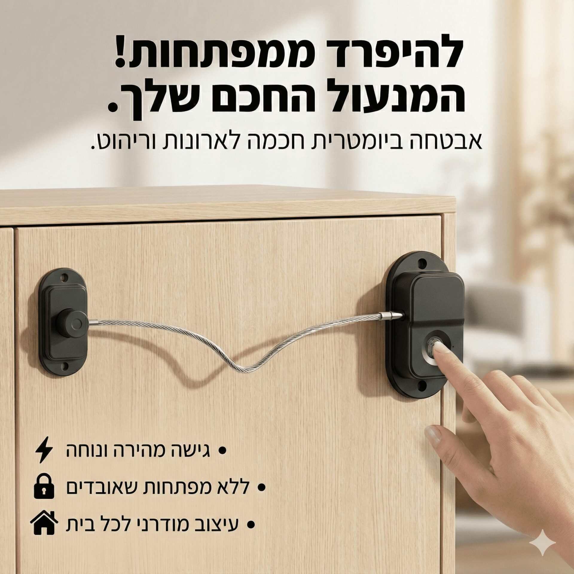 סוג מנגנון: מנעול ביומטרי (טביעת אצבע) עם כבל פלדה גמיש ועמיד.