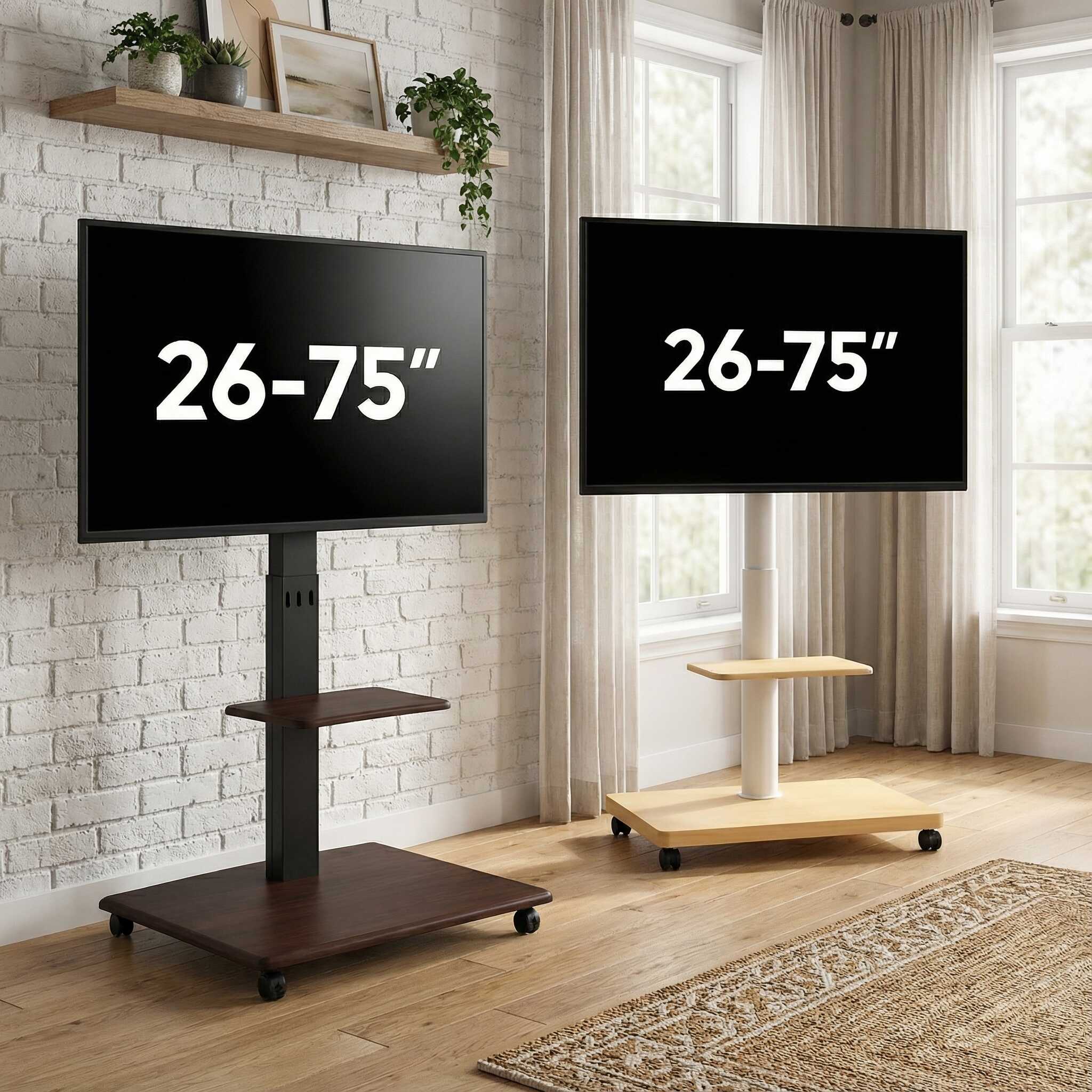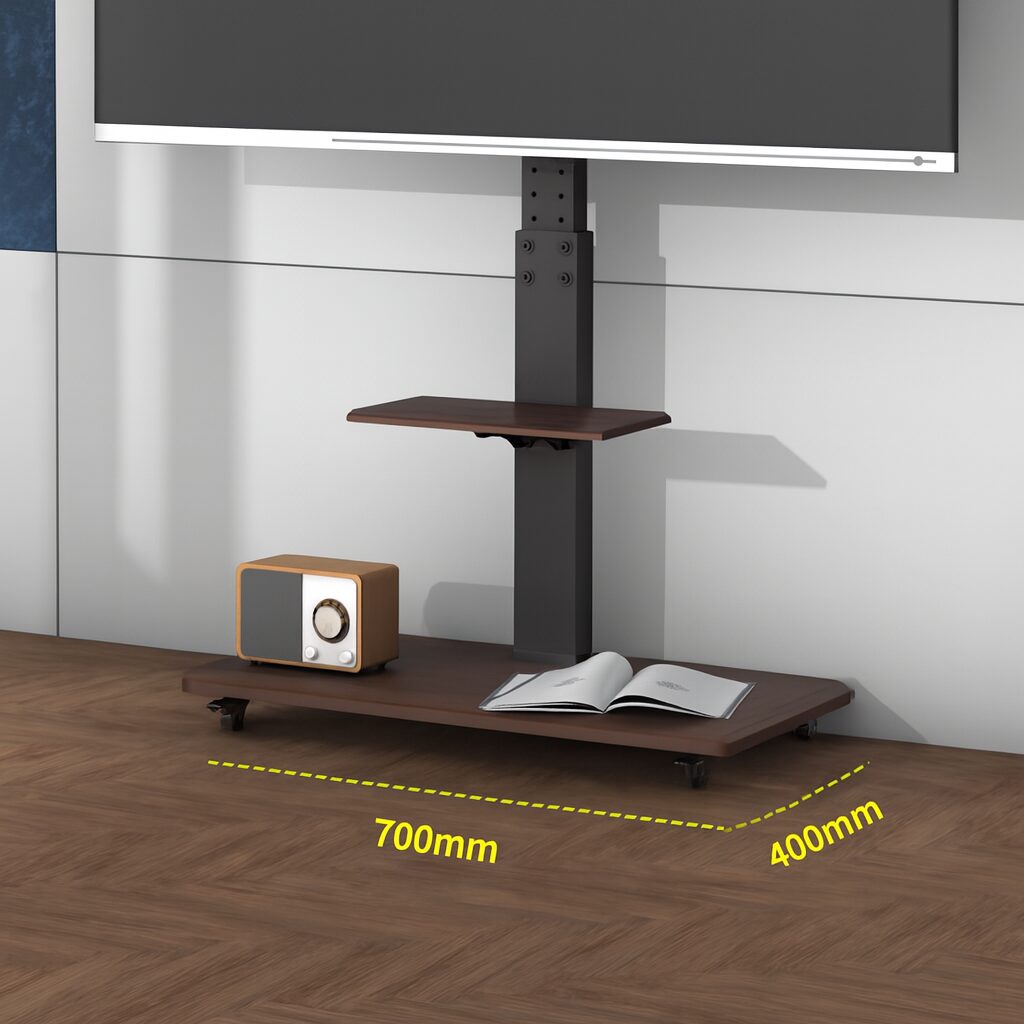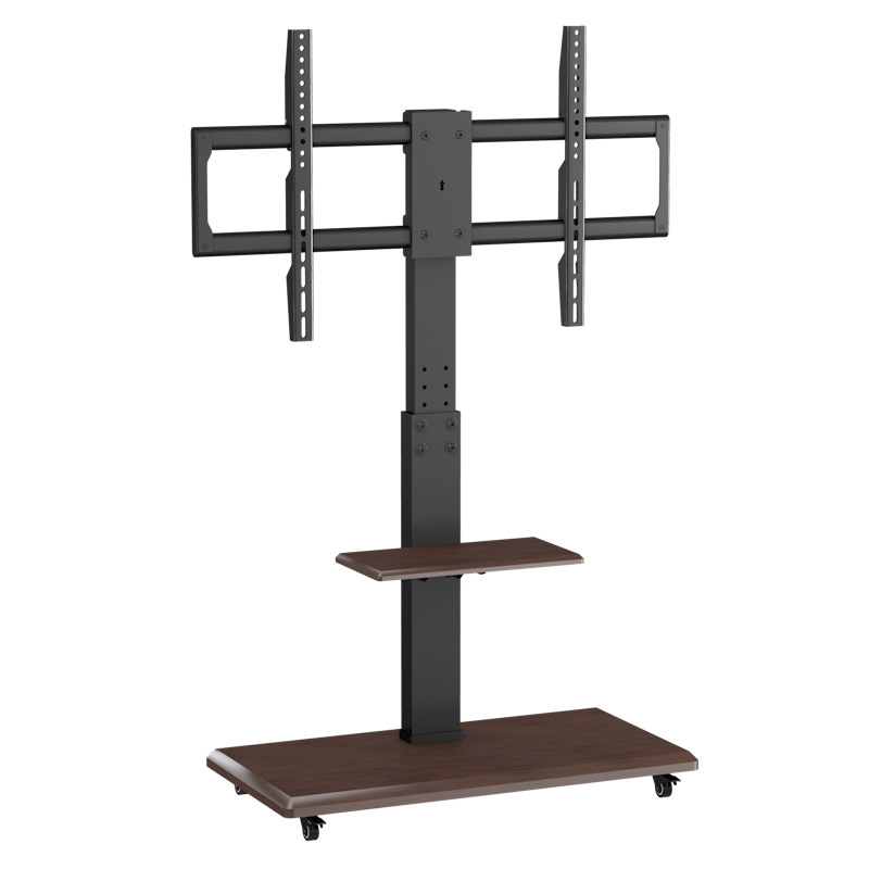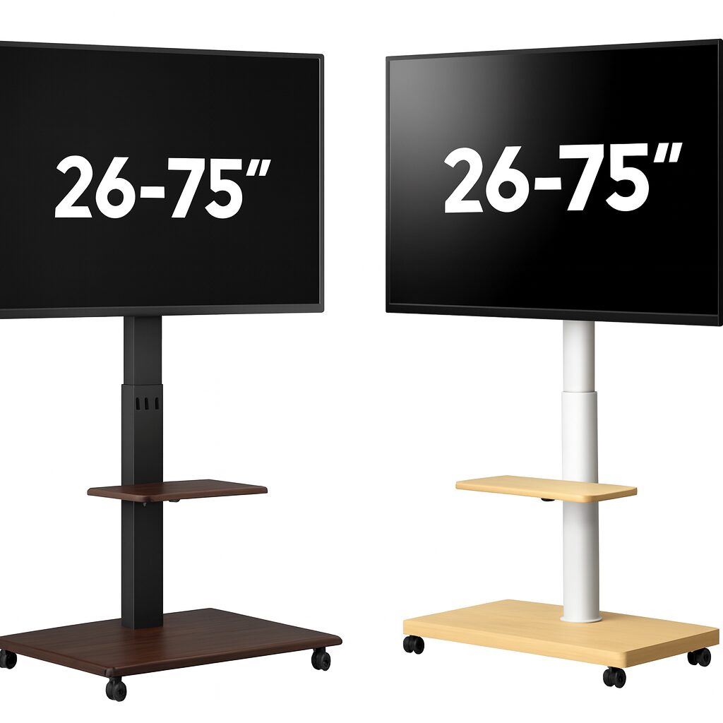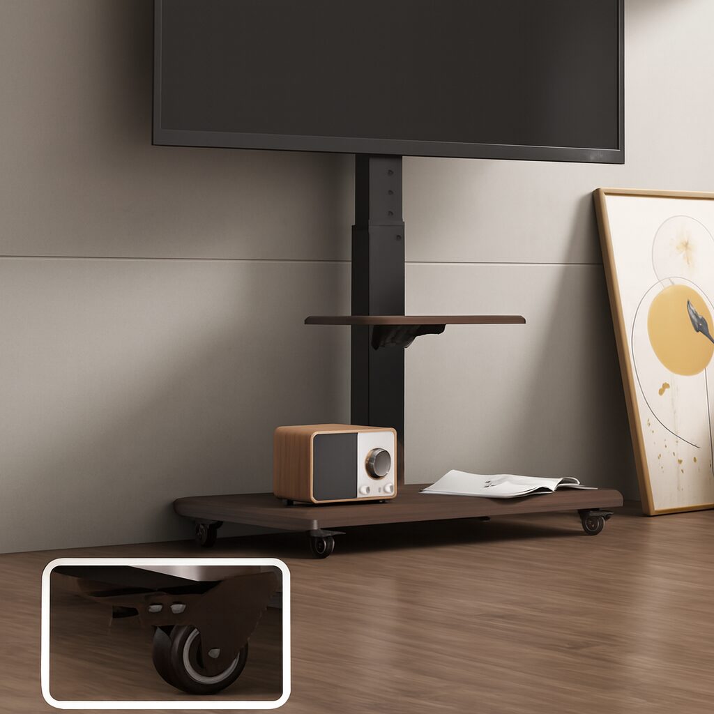 הכירו את הפתרון המושלם לבית או למשרד: מעמד טלוויזיה נייד ויוקרתי, המשלב פונקציונליות מתקדמת עם עיצוב נקי ומודרני. המעמד מאפשר לכם להזיז את הטלוויזיה בקלות מחדר לחדר, לכוון את הגובה הרצוי וליהנות ממראה אסתטי נקי מכבלים – וכל זה ללא צורך בקידוח חורים בקירות.