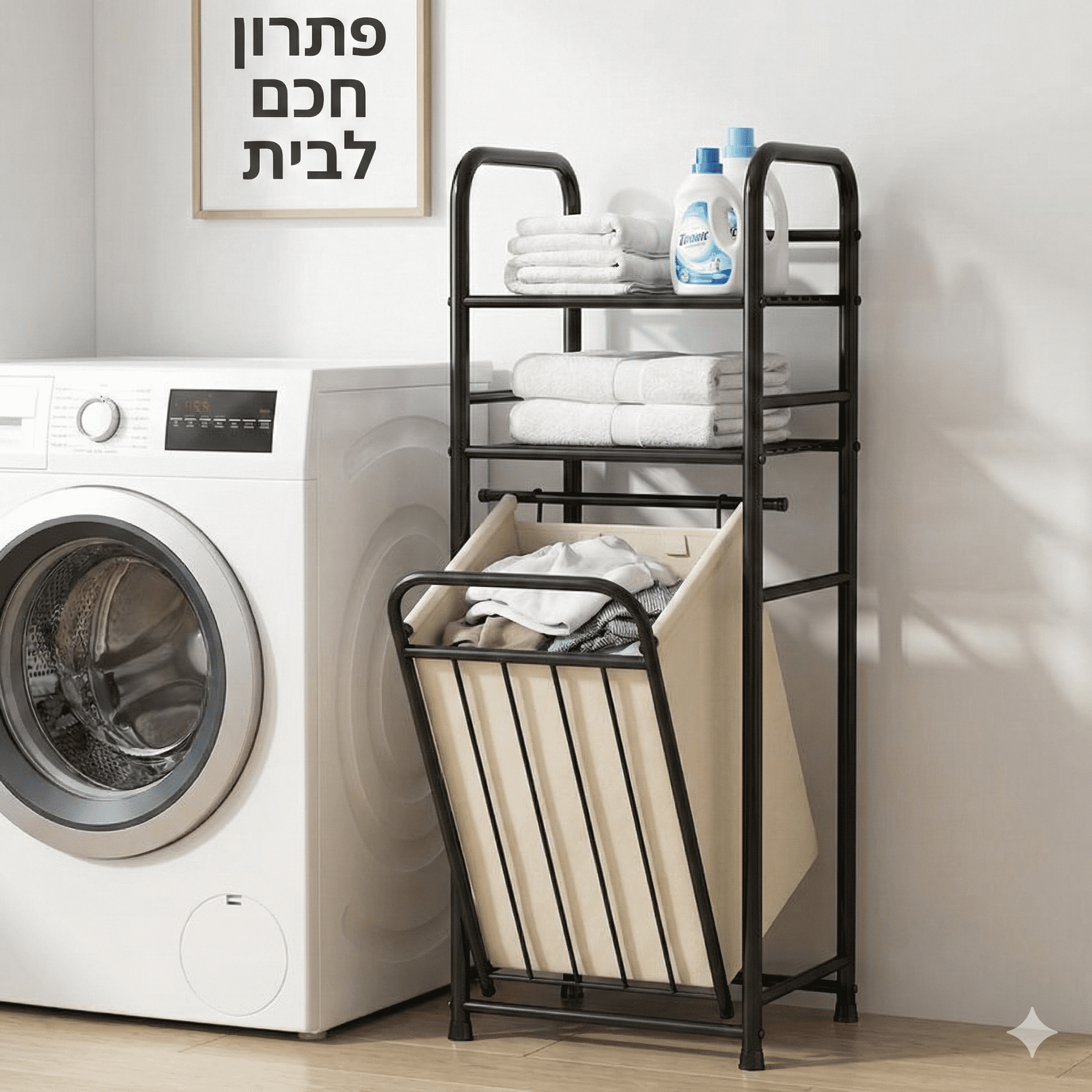 סל נשלף ונוח: סל הכביסה עשוי בד נושם, ניתן לשליפה קלה לצורך ריקון הכביסה למכונה.