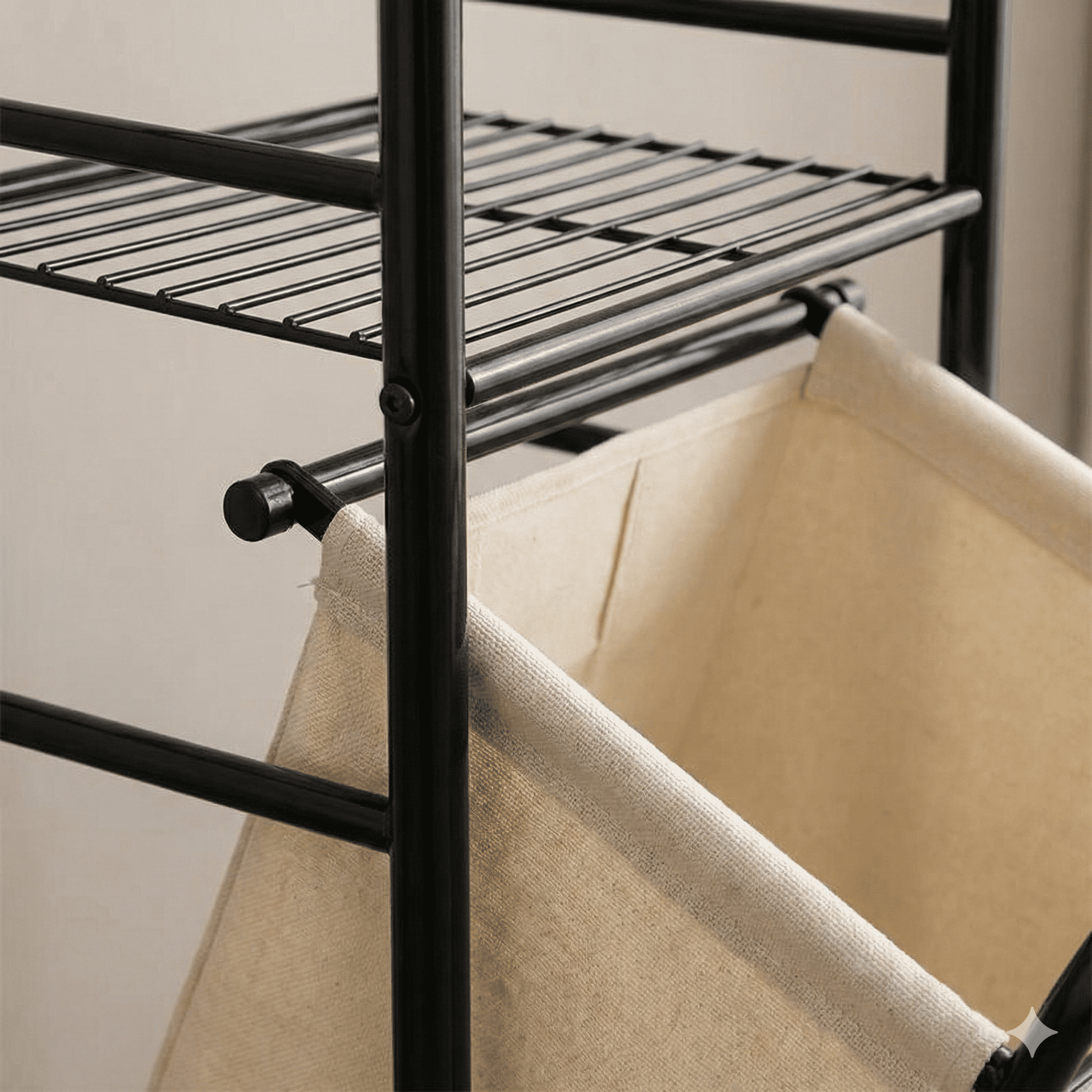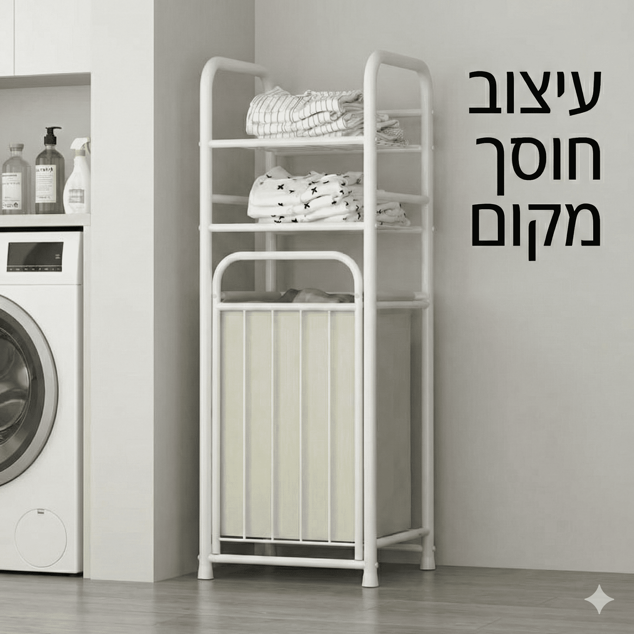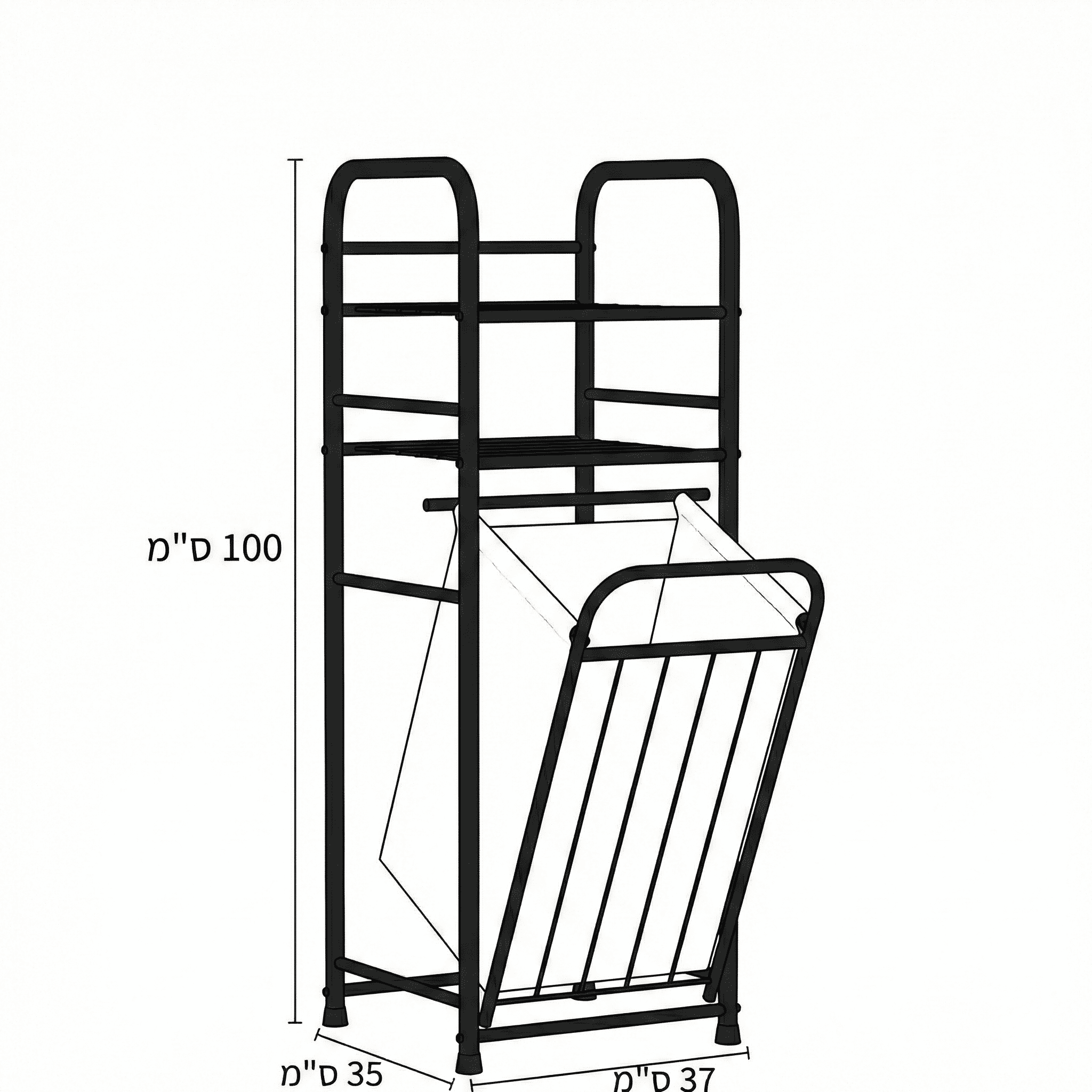 חומר: שלדת מתכת אל-חלד + סל כביסה מבד.