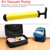 הכירו את משאבת הואקום הידנית שלנו, שתאפשר לכם לצמצם משמעותית את נפח הבגדים, הכריות והשמיכות. בעזרתה, תוכלו לחסוך מקום יקר בארונות, במזוודות ובמגירות.