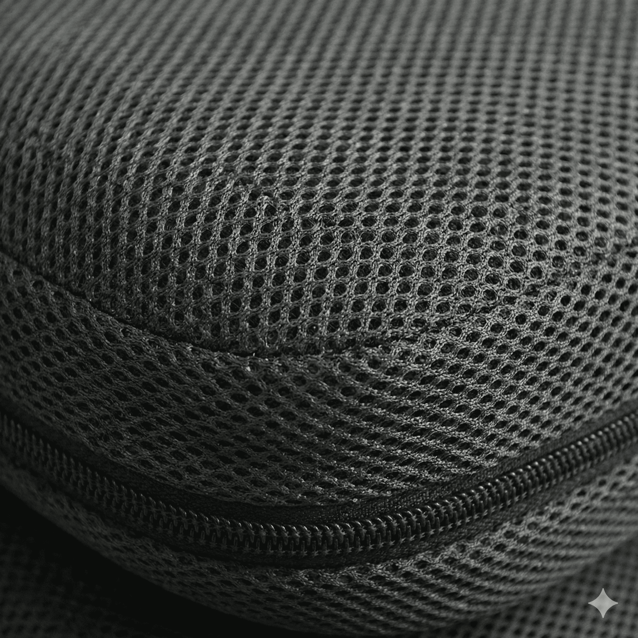 בד רשת נושם (Breathable Mesh): הכיסוי עשוי בד אוורירי המונע הזעה ושומר על קרירות גם בימים חמים. הכיסוי ניתן להסרה באמצעות רוכסן ומתאים לכביסה.