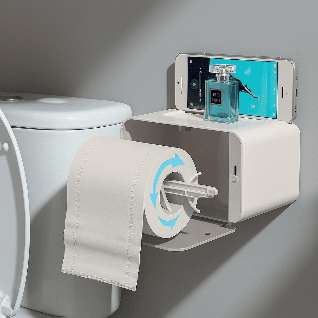 - שטח אחסון חכם: מקום לגליל נייר טואלט ומדף עליון נוח לטלפון, בושם או שעון. מתאים למוצרי נייר בקוטר של עד 20 ס"מ.