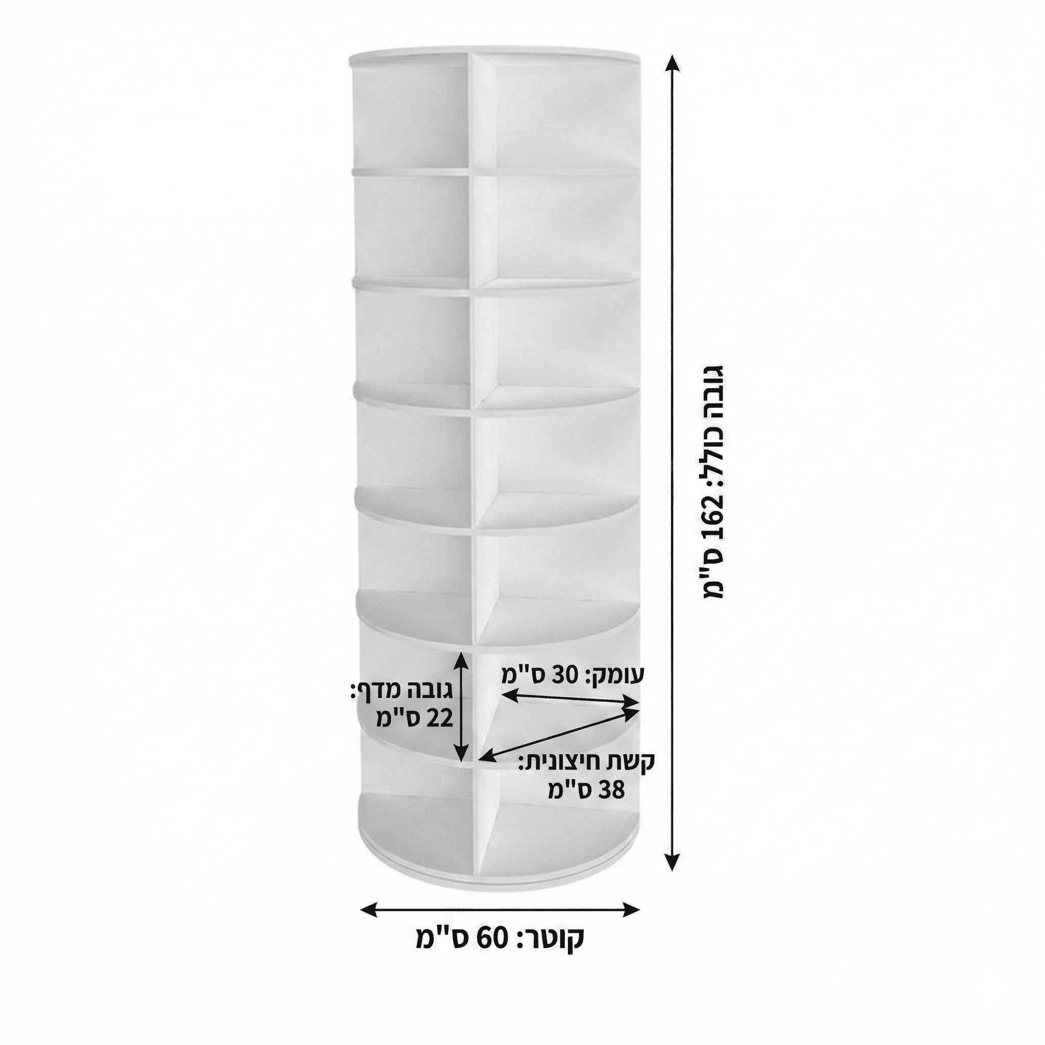 חיסכון במקום – קוטר בסיס 60 ס"מ עם הרבה קומות אחסון