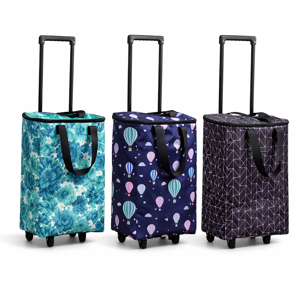 העגלה כוללת שכבת בידוד תרמית עבה עם ריפוד פנימי מאלומיניום, השומרת על קור בקיץ וחום בחורף. מתאימה במיוחד להובלת מוצרים קפואים, מזון חם, שתייה קרה וקניות מהסופר או מהשוק.