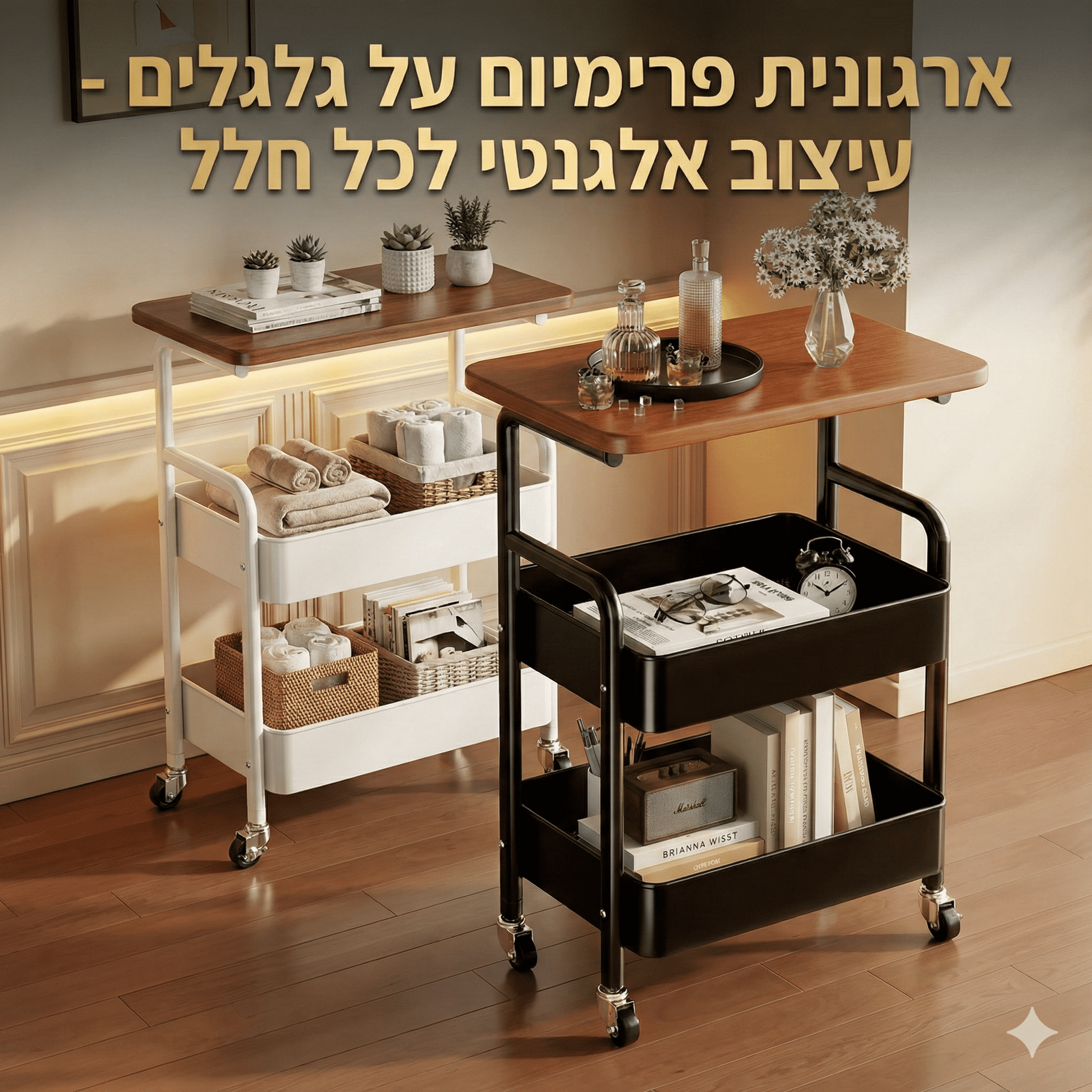 מחפשים את השילוב המושלם בין סטייל לפרקטיקה? עגלת השירות הניידת שלנו היא בדיוק מה שהבית שלכם צריך. עם עיצוב נקי ומודרני, היא משתלבת בקלות בכל חלל – מחדר השינה ועד המטבח.