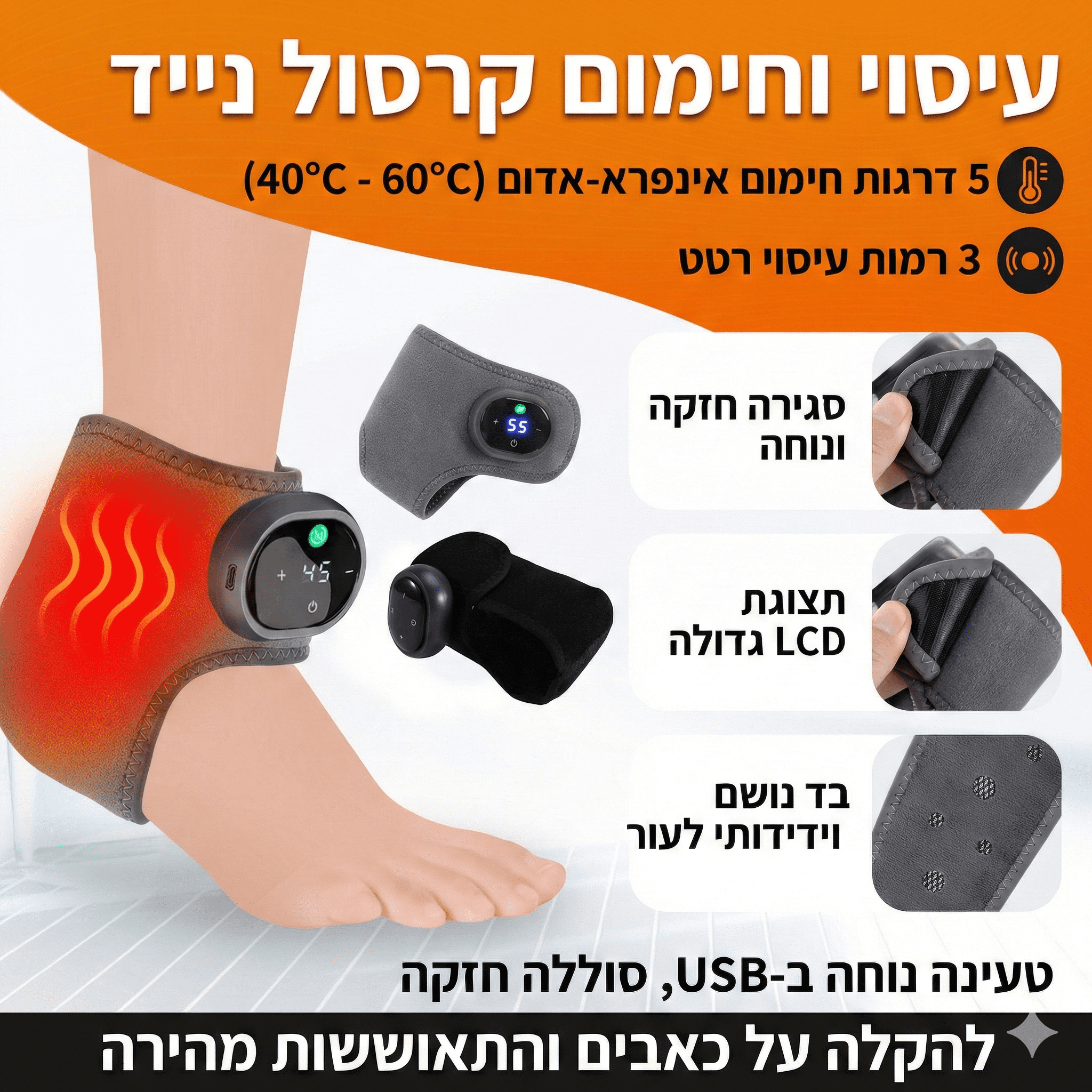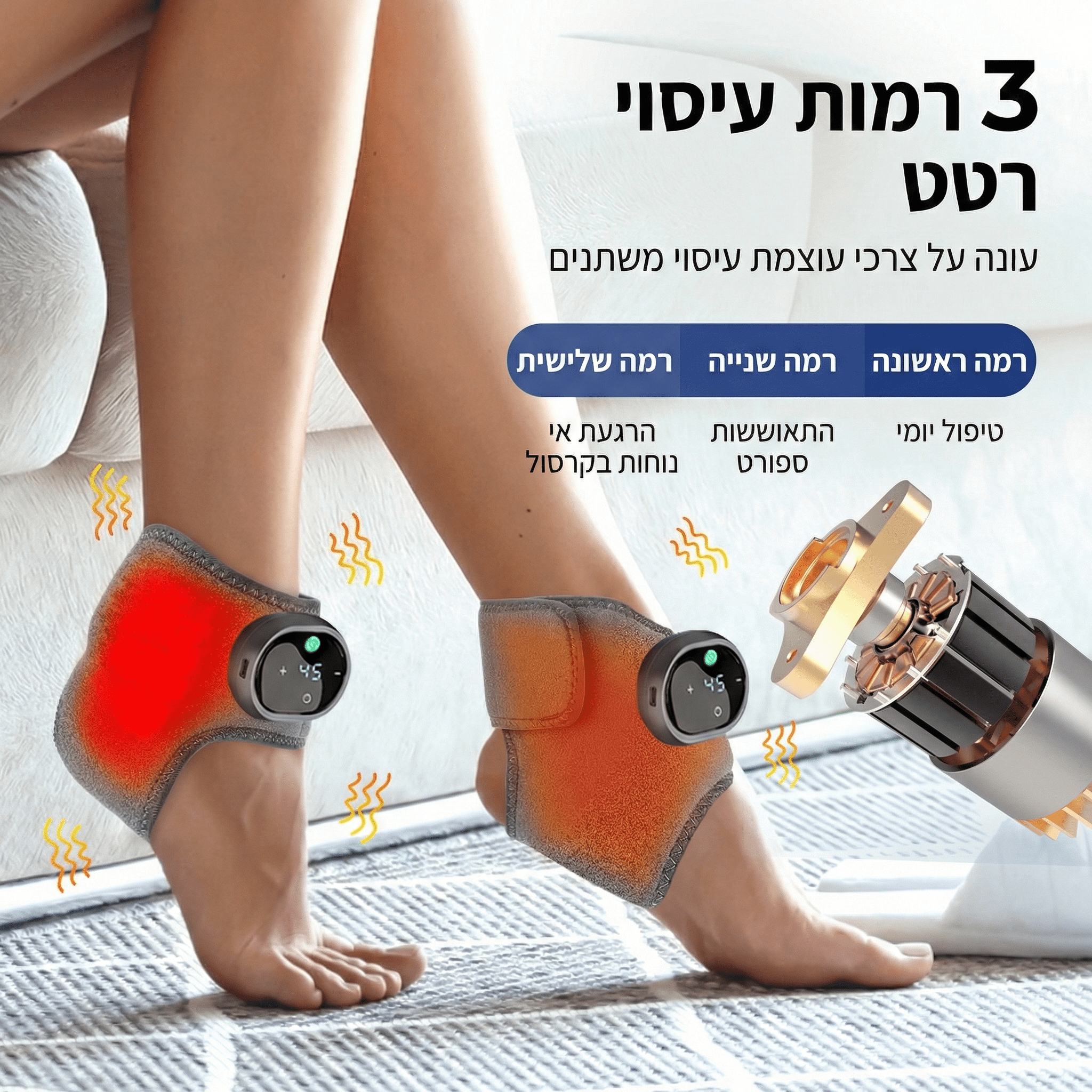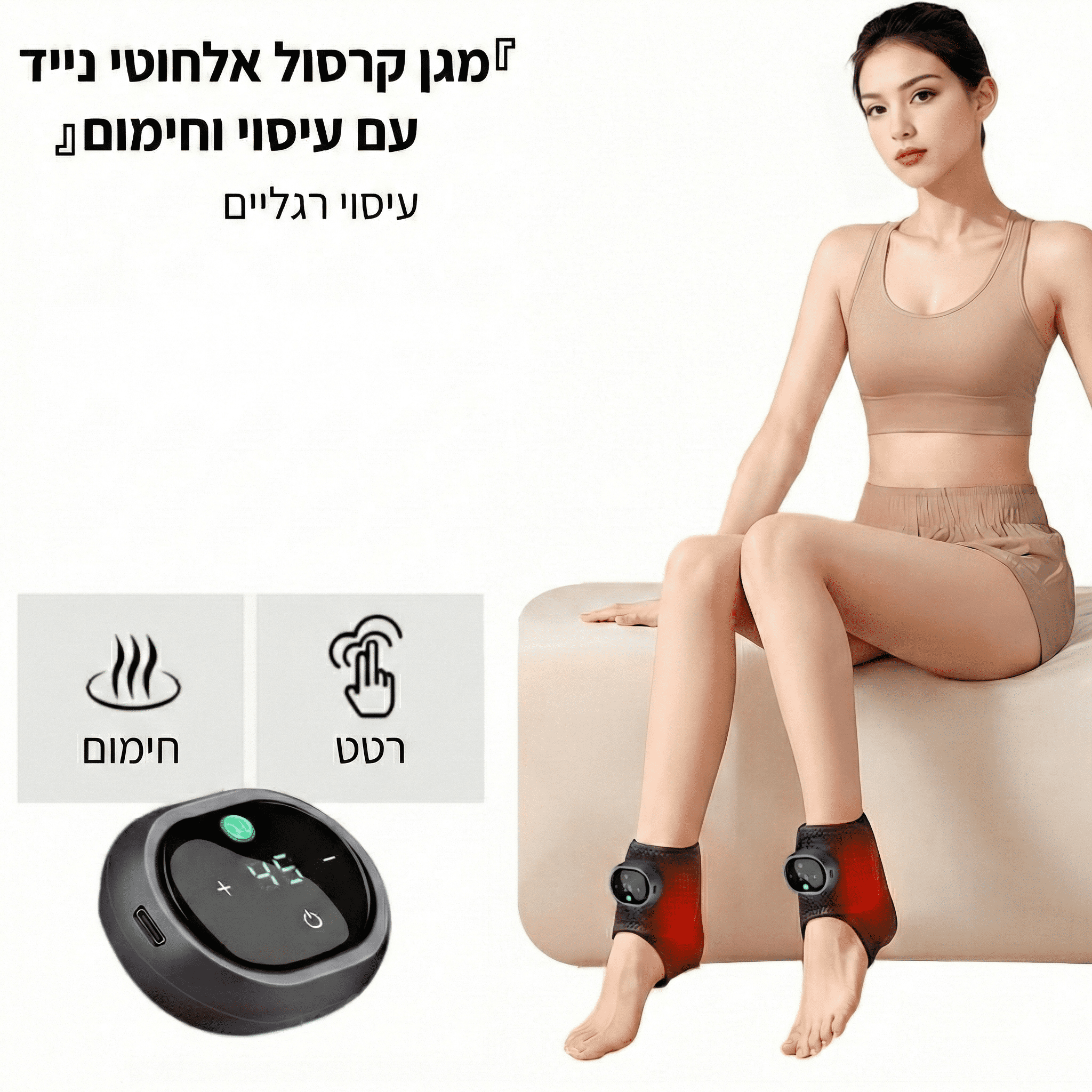 סובלים מכאבים בקרסול, נפיחות או עייפות מצטברת? הכירו את הפתרון הטכנולוגי החדש שיחזיר לכם את קלילות התנועה. תומך הקרסול החכם משלב טכנולוגיית חימום אינפרא-אדום יחד עם עיסוי רטט (Vibration Therapy), כדי להמריץ את מחזור הדם, להרפות שרירים תפוסים ולהאיץ תהליכי החלמה.
