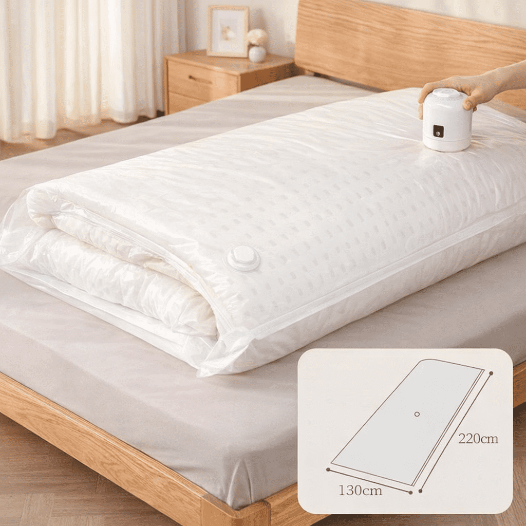 מידה XXL – 220×130 ס״מ: מתאימה במיוחד לפריטים גדולים כמו שמיכת פוך/שמיכת חורף, מצעים עבים, כריות גדולות ואחסון עונתי.