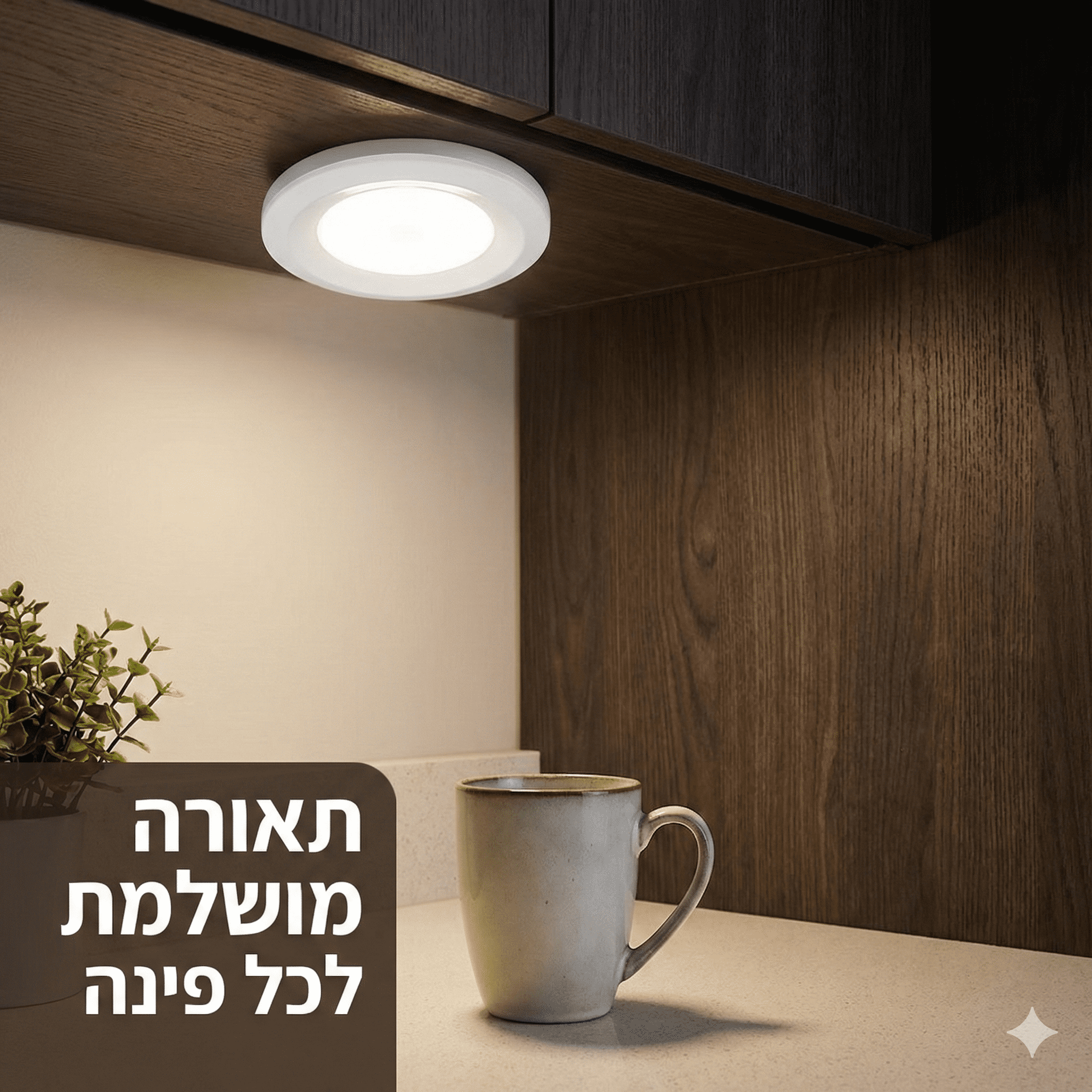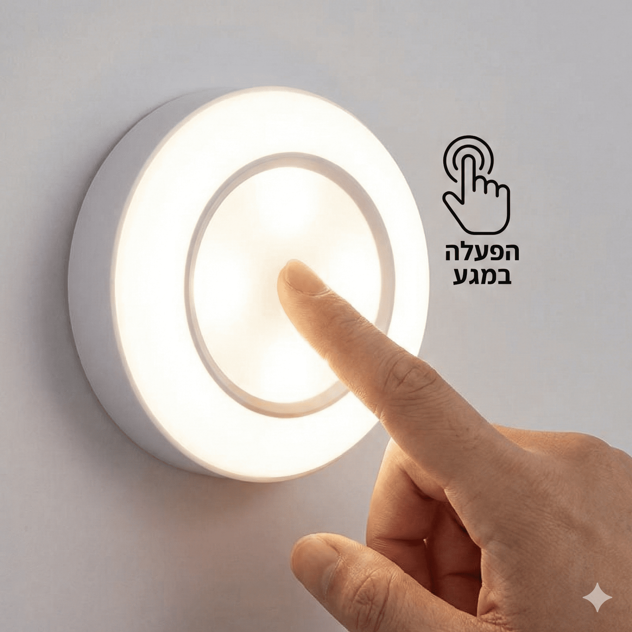 תאורת ה־LED החכמה שלנו מעניקה אור רך ונעים בלחיצת נגיעה או באמצעות שלט רחוק – בלי חיווט, בלי קידוחים ובלי כאב ראש.