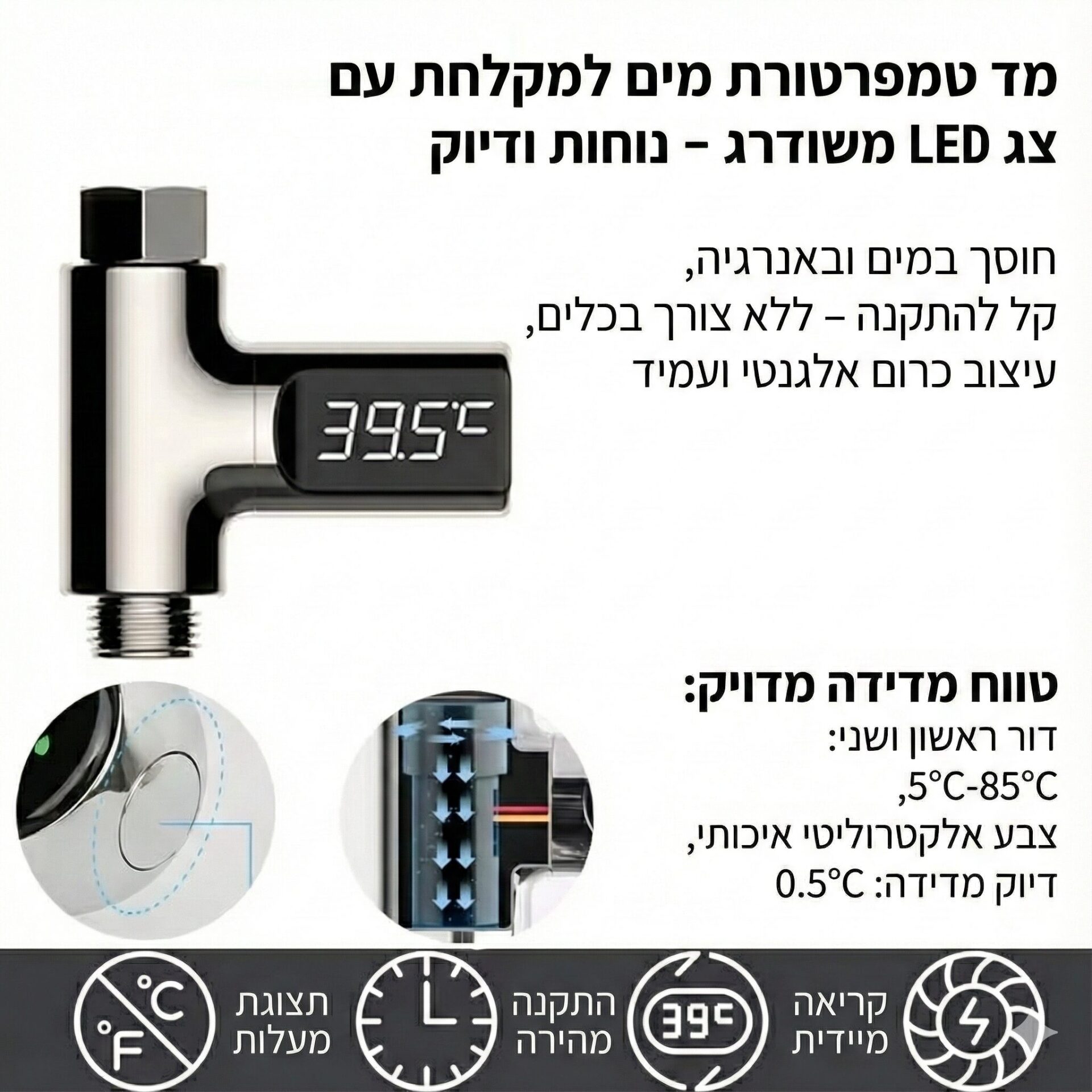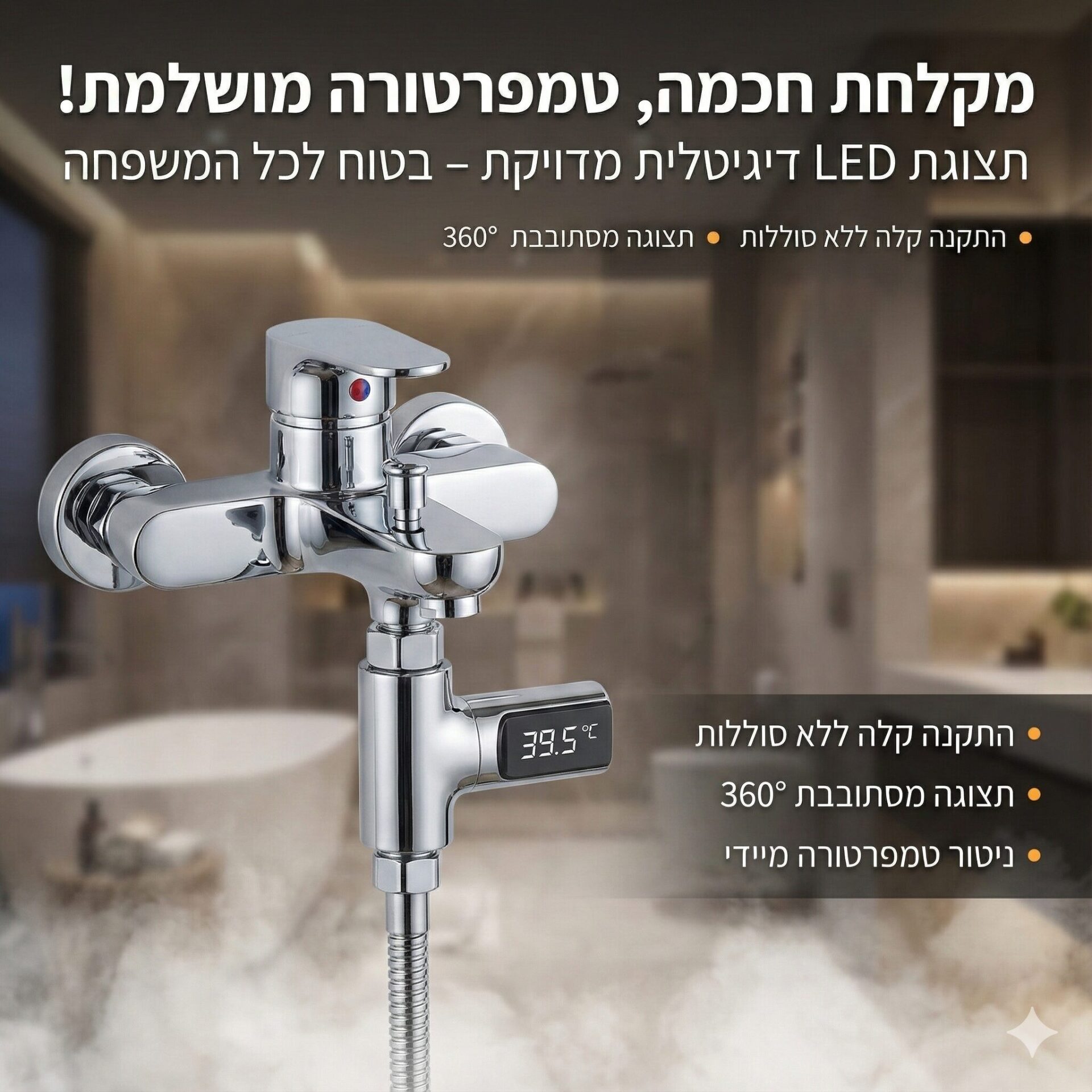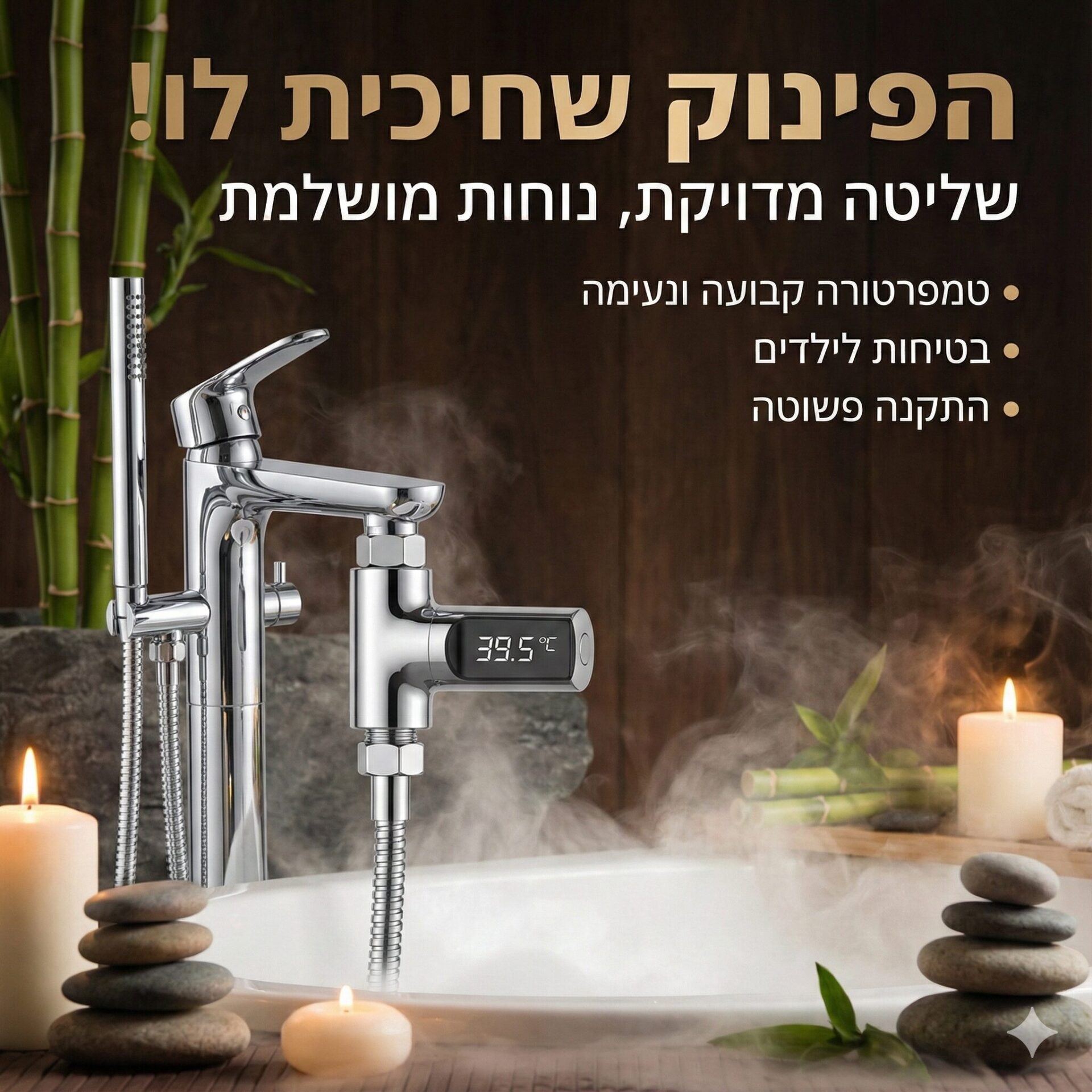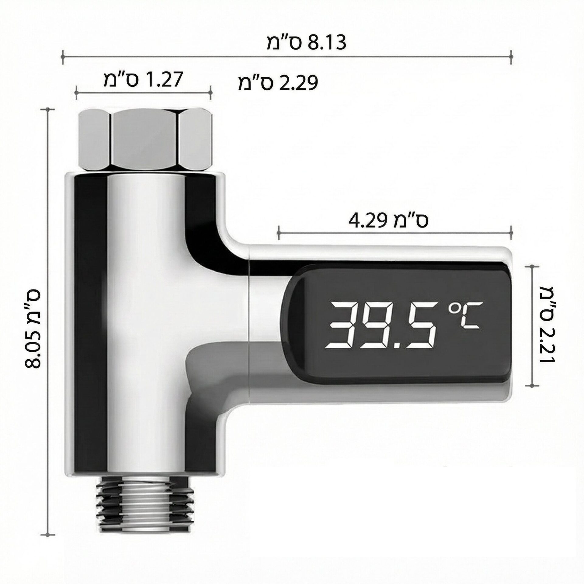 נפרדים מניחושים – מקלחת חכמה ובטוחה יותר מכירים את הרגע הזה שאתם נכנסים למקלחת והמים רותחים מדי או קפואים? או את הפחד לכוון את המים לאמבטיה של התינוק? עם מד הטמפרטורה החדשני שלנו, אתם מקבלים שליטה מלאה. המכשיר מתחבר בקלות בין הברז לצינור המקלחת ומציג בדיוק של עשירית המעלות את חום המים.